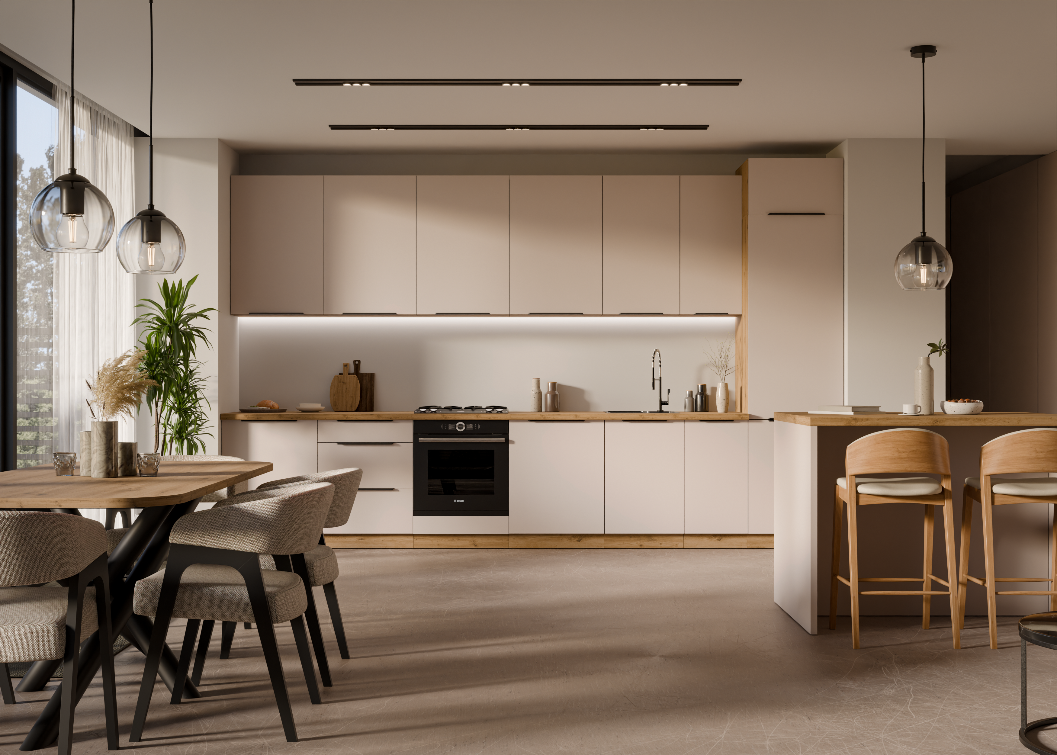 Kolor kaszmiru na frontach, który od kilku lat cieszy się rosnącą popularnością, wprowadza do wnętrza uczucie ciepła i spokoju – to alternatywa dla klasycznych, chłodniejszych tonów. Zestawiona z korpusem w kolorze dąb artisan oraz nowoczesnym uchwytem, szafka prezentuje się wyjątkowo elegancko.