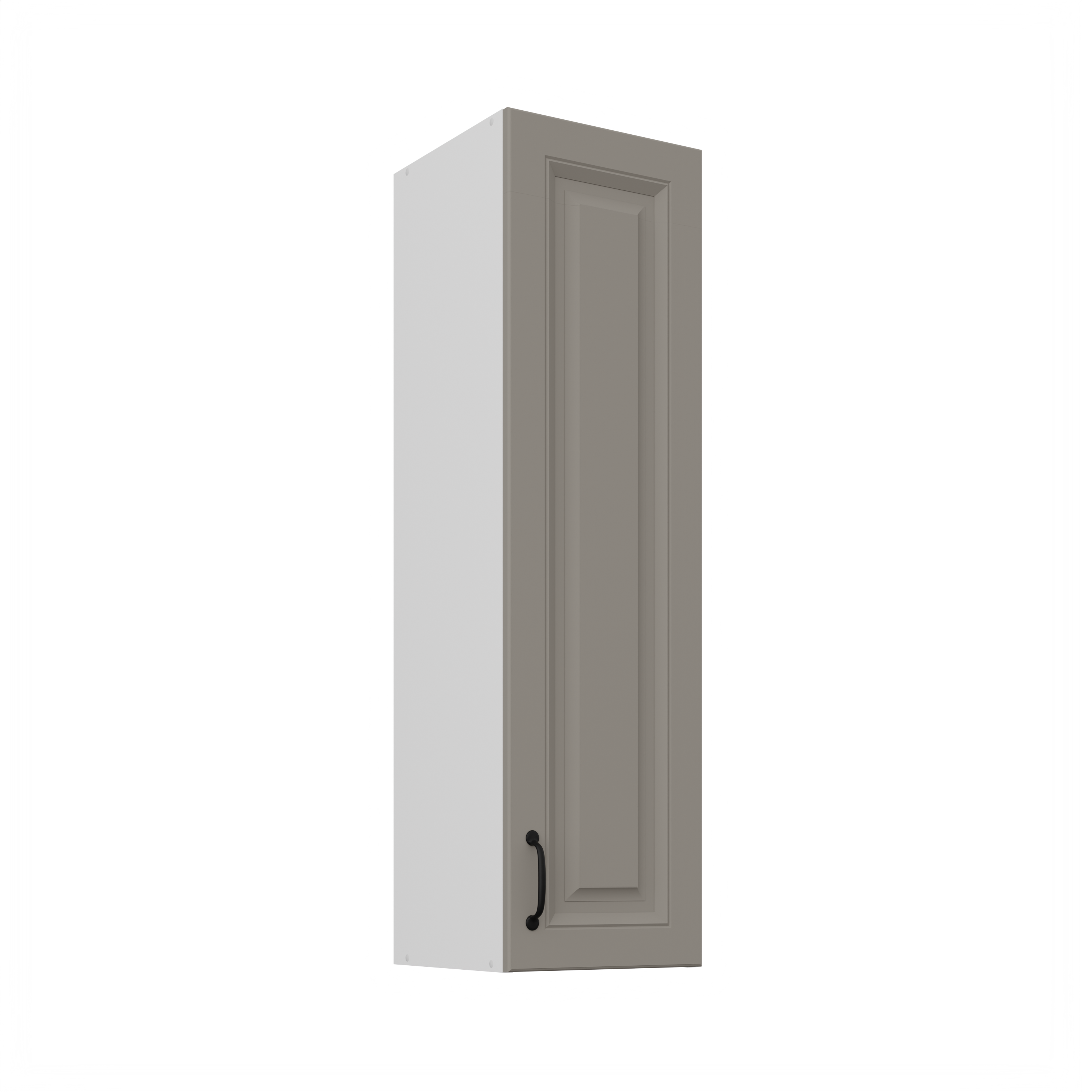 Szafka górna wisząca 30 G-108 1F – ATENA. idealnie sprawdzi się jako pionowy akcent w zabudowie kuchennej, oferując zaskakująco dużo miejsca do przechowywania przy niewielkiej szerokości. Jej elegancki wygląd zawdzięczamy matowemu jasnoszaremu frontowi z subtelnym frezowaniem, który pasuje zarówno do klasycznych, jak i nowoczesnych aranżacji. Korpus w odcieniu białym czyni mebel ,,jasnym i stonowanym ".