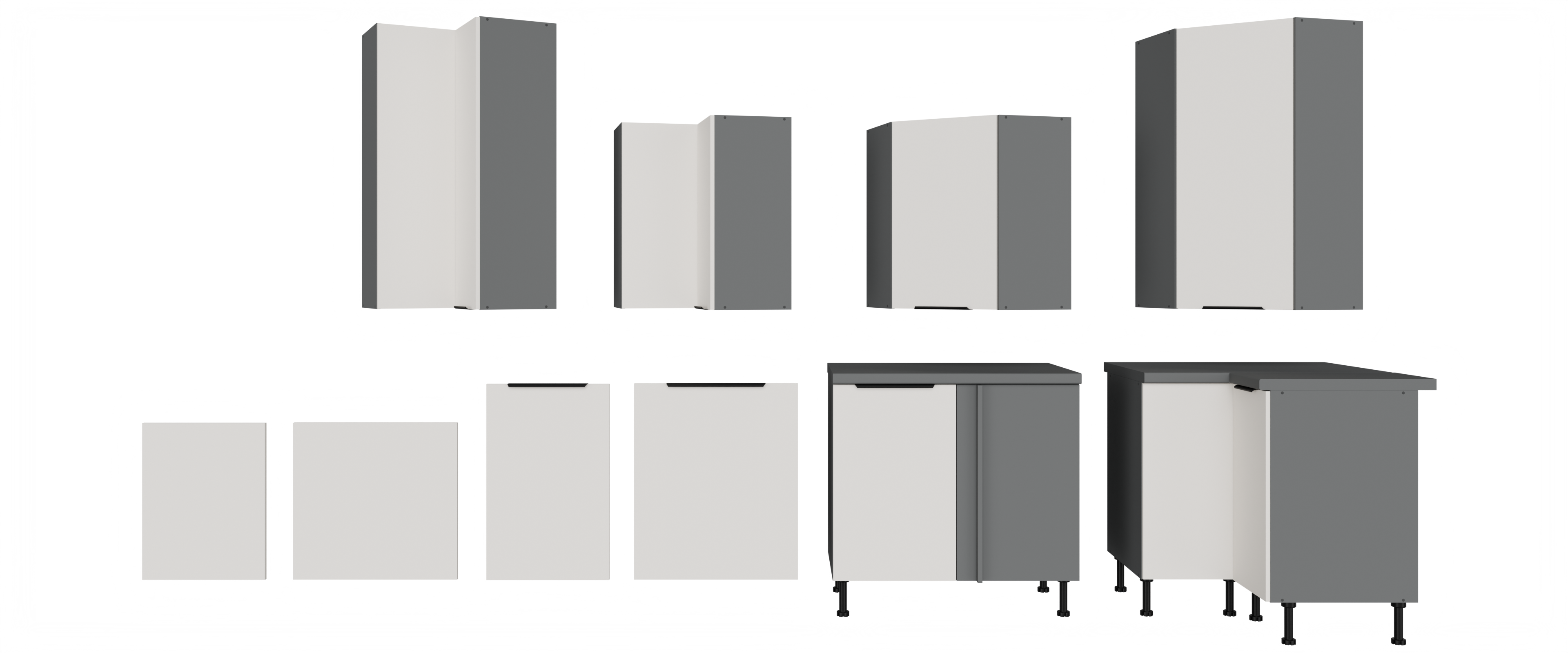 UWAGA! Szafki dolne z kolekcji kuchennej CALIA wykonane na korpusie w kolorze Antracyt - NIE posiadają w zestawie cokołów dociętych pod wymiar szafki! Szafki stoją na czarnych regulowanych nóżkach.