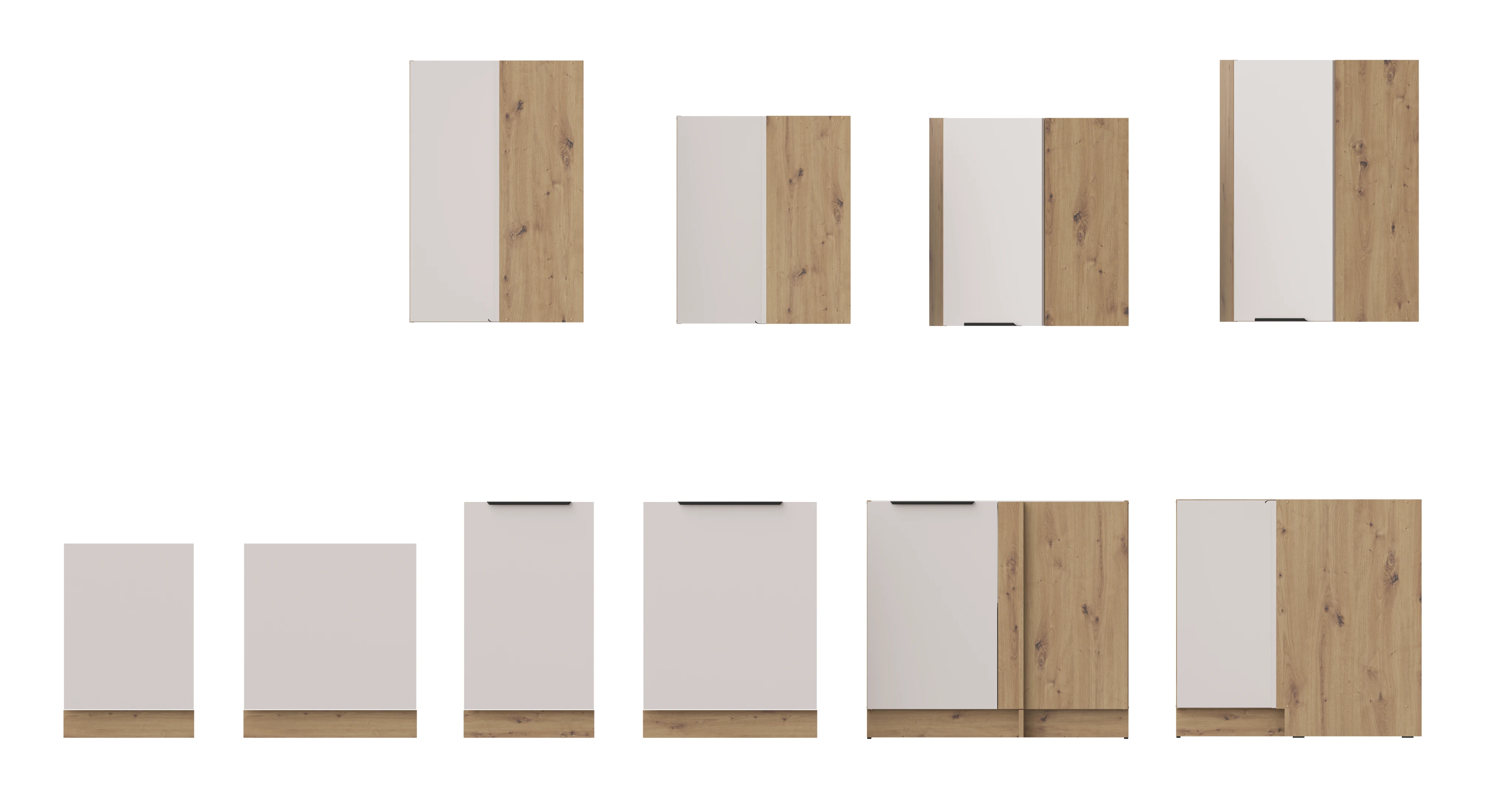 - Modne Kaszmirowe fronty o matowym wykończeniu + korpus w kolorze dąb artisan