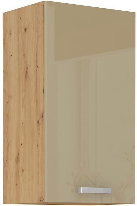 Szafka górna 40 cm o wysokości 72 cm zapewnia funkcjonalne miejsce na najpotrzebniejsze przedmioty w kuchni. Kompaktowa szerokość sprawia, że pasuje nawet do wąskich przestrzeni, a przy tym oferuje odpowiednią pojemność. Prosta konstrukcja z jednym frontem ułatwia codzienny dostęp do wnętrza szafki.