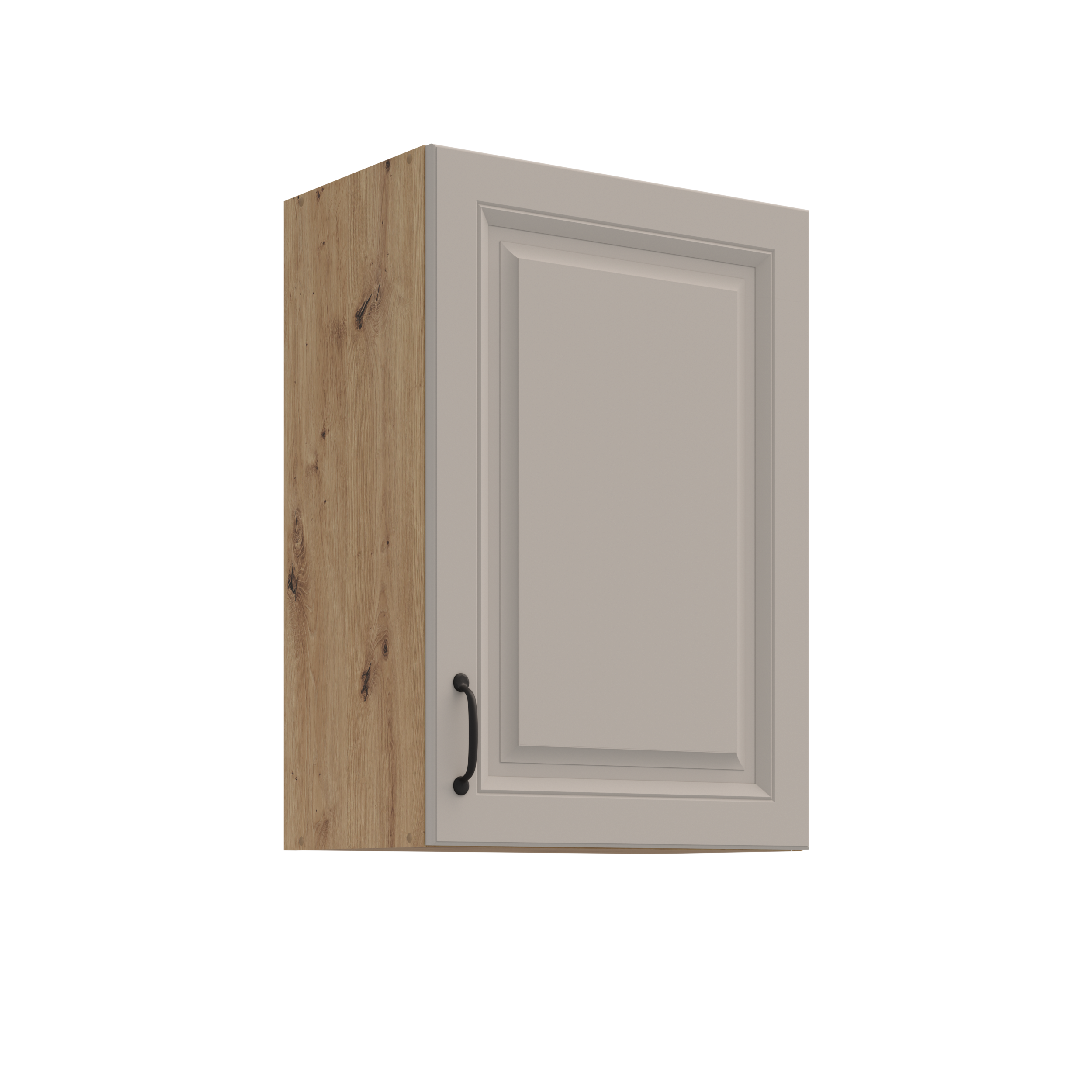 Szafka górna wisząca 50 G-72 1F z kolekcji ATENA to praktyczne rozwiązanie do przechowywania codziennych produktów na wygodnej wysokości, które pomaga utrzymać porządek i łatwy dostęp do najpotrzebniejszych rzeczy. Jasnoszary, matowy front z eleganckim frezowaniem w połączeniu z czarnym uchwytem i korpusem szafki w kolorze dąb artisan- tworzy ponadczasowy duet, który sprawdzi się zarówno w nowoczesnych, jak i klasycznych kuchniach.
