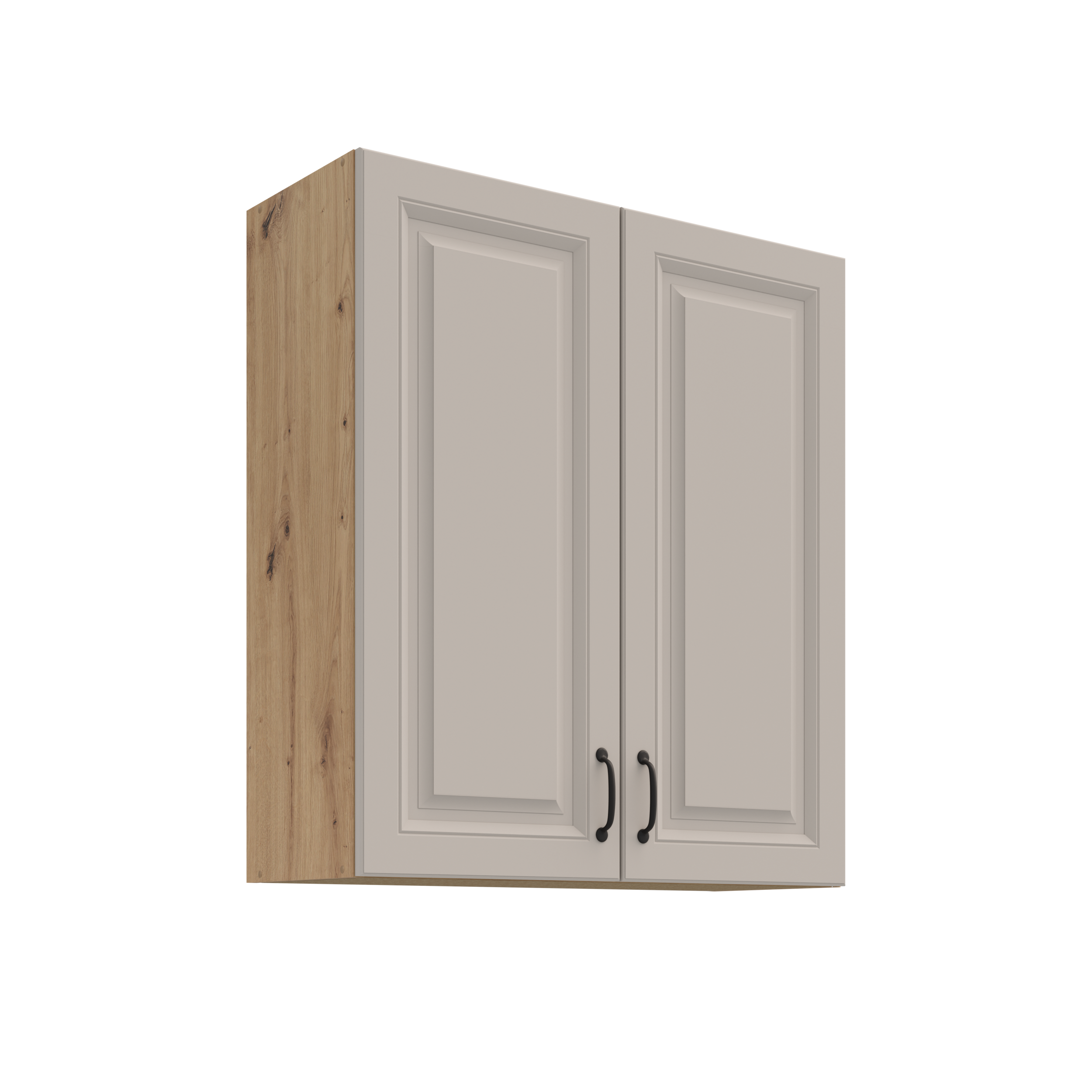 Szafka górna wisząca 80 G – 90 2F z kolekcji kuchennej ATENA to idealne rozwiązanie dla tych, którzy potrzebują jeszcze więcej przestrzeni do przechowywania w swojej kuchni. Zwiększona wysokość (90 cm) pozwala maksymalnie wykorzystać miejsce nad blatem, a dwie pojemne komory z frontami otwieranymi na boki pomieszczą zarówno naczynia, jak i zapasy spożywcze. Frezowane fronty w subtelnym jasnoszarym kolorze kontrastują z korpusem w odcieniu dąb artisan, tworząc nowoczesny, efekt wizualny. Całość dopełniają stylowe, czarne uchwyty, które podkreślają charakter mebla i wprowadzają spójność.