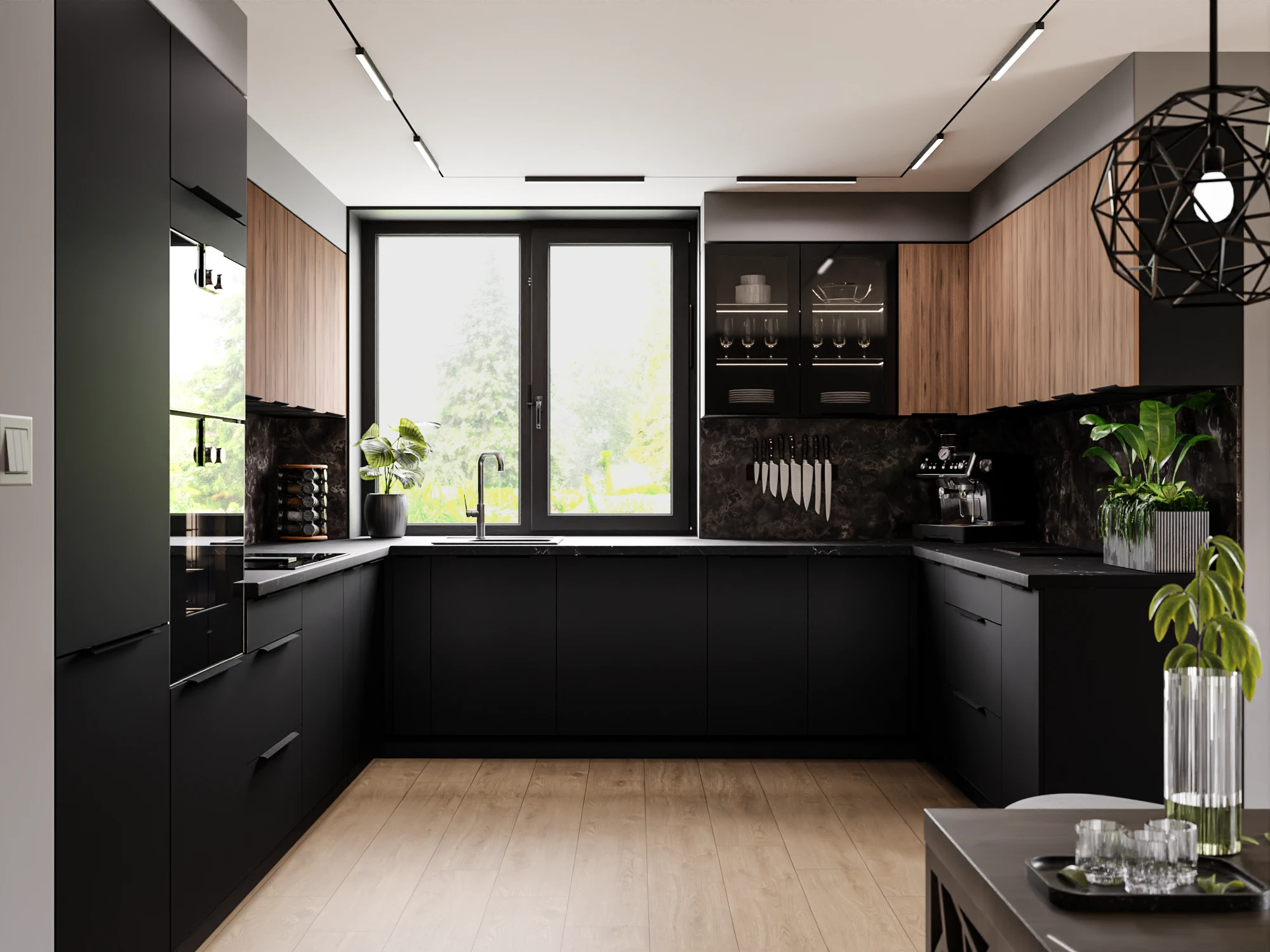 - Eleganckie czarne fronty o matowym wykończeniu + korpus w kolorze czarnym