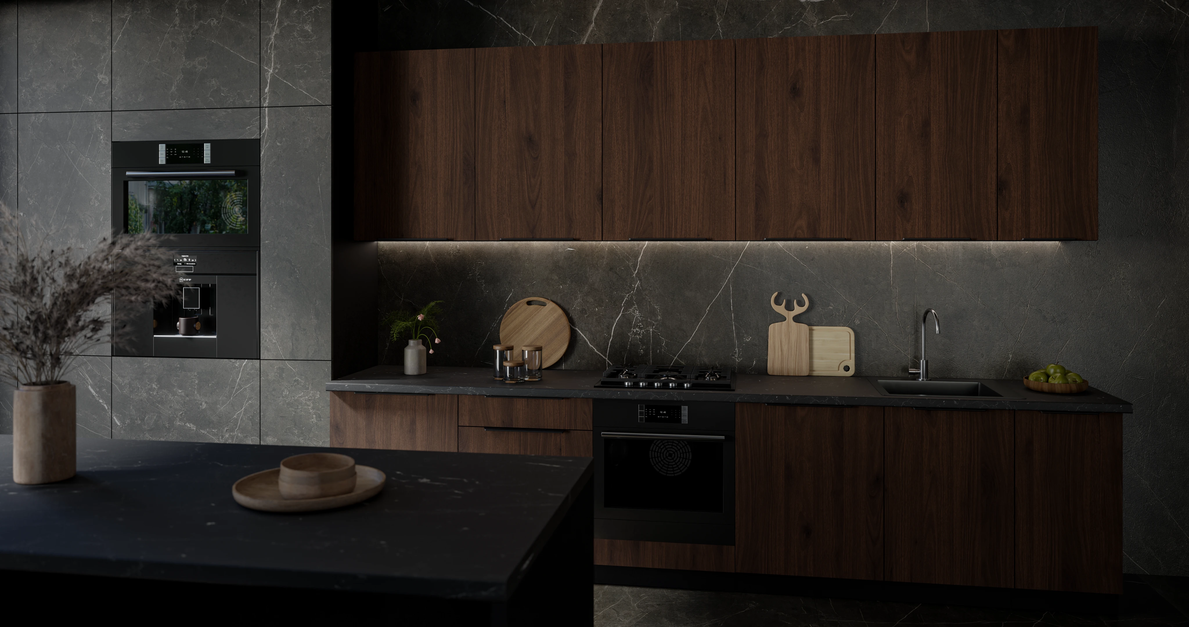 - Orzechowe fronty o matowym wykończeniu + korpus w kolorze czarnym