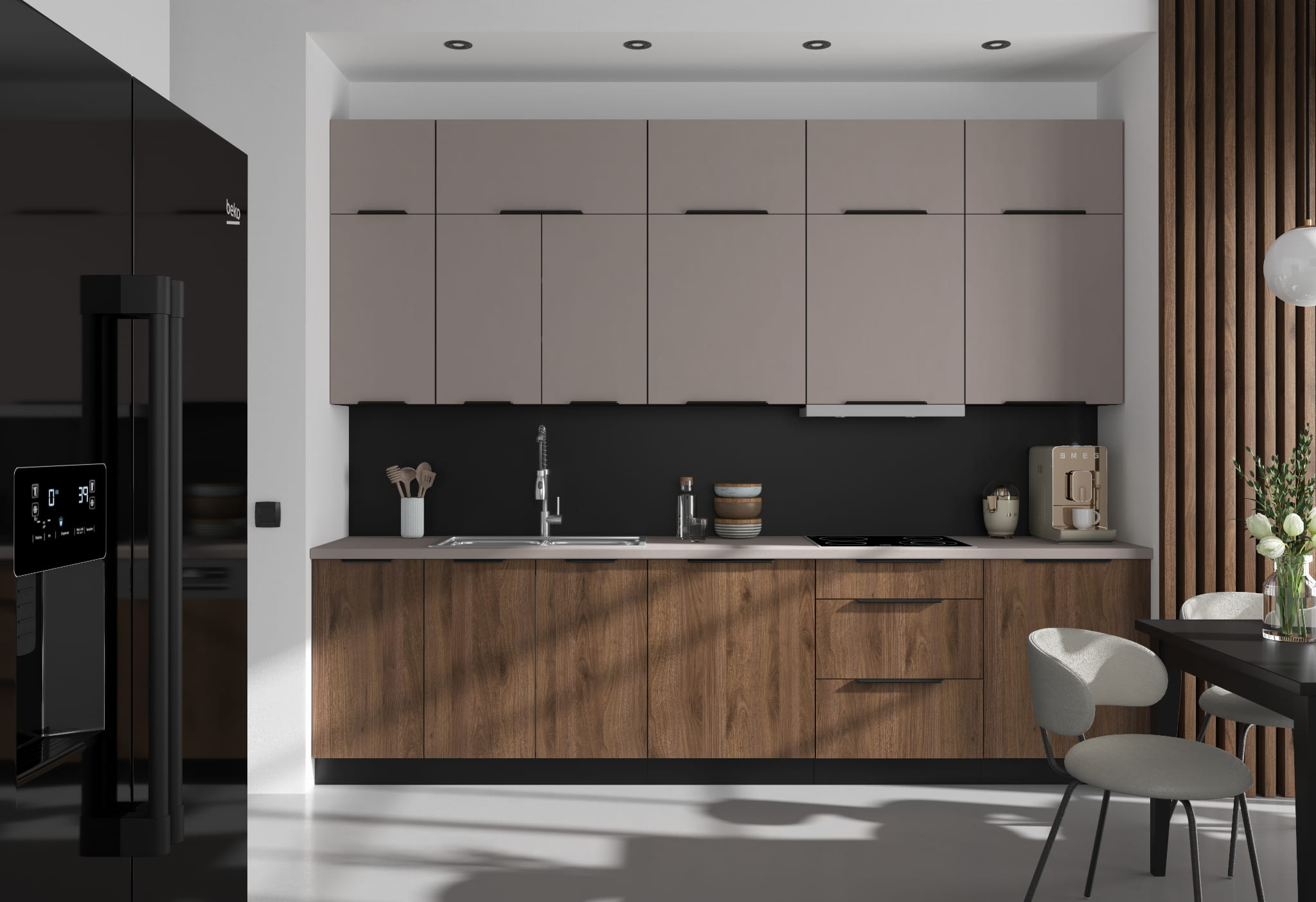 - Orzechowe fronty o matowym wykończeniu + korpus w kolorze czarnym