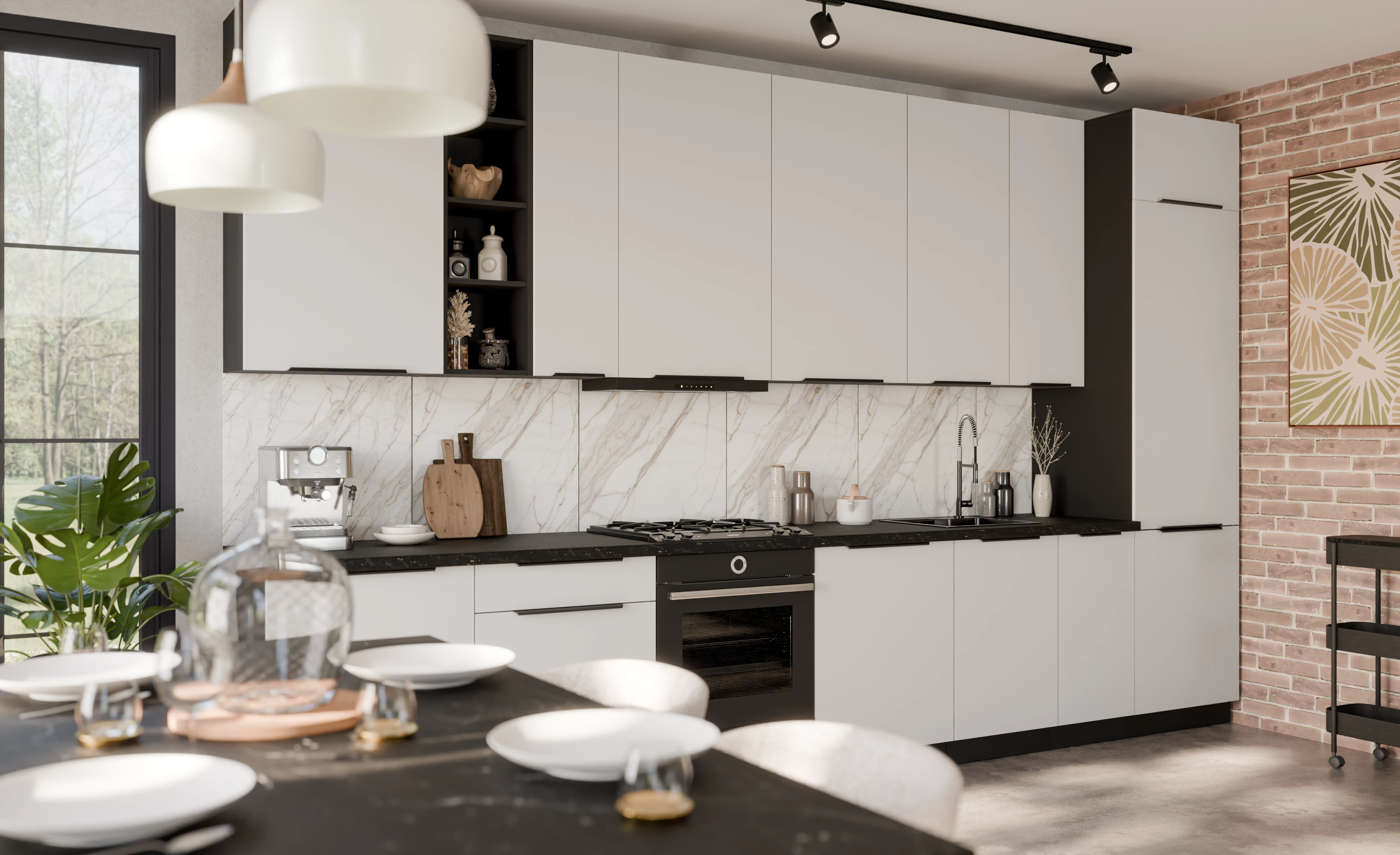 Szafki kuchenne z kolekcji CALIA zostały wyposażone w prowadnice PREMIUM BOX oraz system cichego domyku, które zapewniają komfort użytkowania i trwałość na lata. To kuchnia, która zachwyca wyglądem i pozostaje praktyczna każdego dnia.