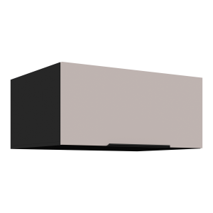Szafka górna nadstawna 80 NAGU-36 1F z kolekcji KASZMIR - Idealna do zabudowy wysokiej lub sufitowej – szafka nadstawna typu pawlacz wprowadza dodatkową przestrzeń do przechowywania rzadziej używanych przedmiotów. Jej front w subtelnym kolorze kaszmiru pięknie odbija światło, rozjaśniając całą zabudowę. Czarny korpus i uchwyt stanowią estetyczny kontrapunkt dla jaśniejszego frontu. Sprawdzi się doskonale nad słupkami z piekarnikiem czy lodówką, dopełniając całość eleganckim wykończeniem.