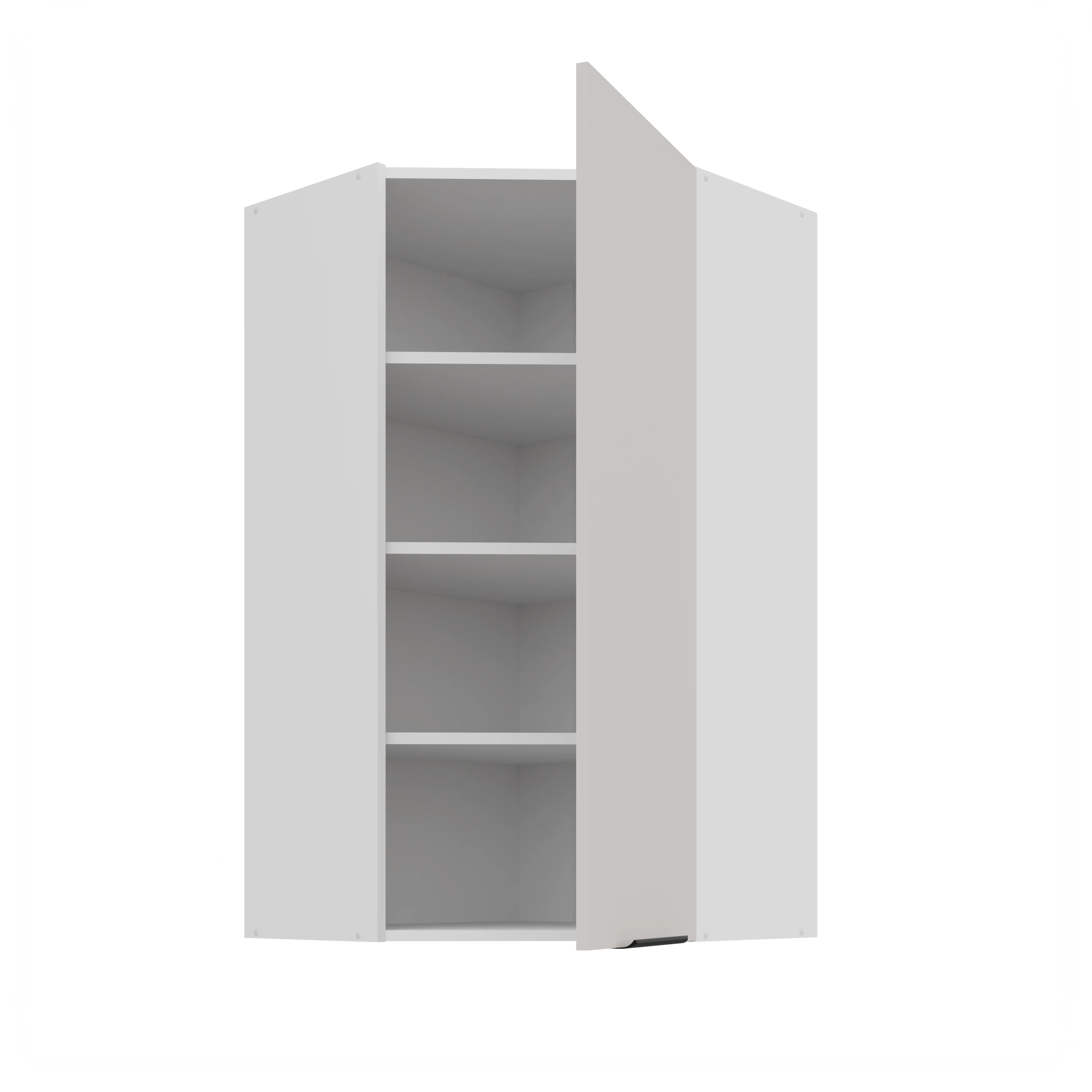 Szafka górna narożna 60 x 60 GN-108 1F (45°) z kolekcji KASZMIR to ergonomiczne rozwiązanie z pojedynczym frontem otwieranym pod kątem 45°. Jej konstrukcja ułatwia dostęp do przestrzeni w rogu i sprawia, że cała zabudowa nabiera lekkości wizualnej.