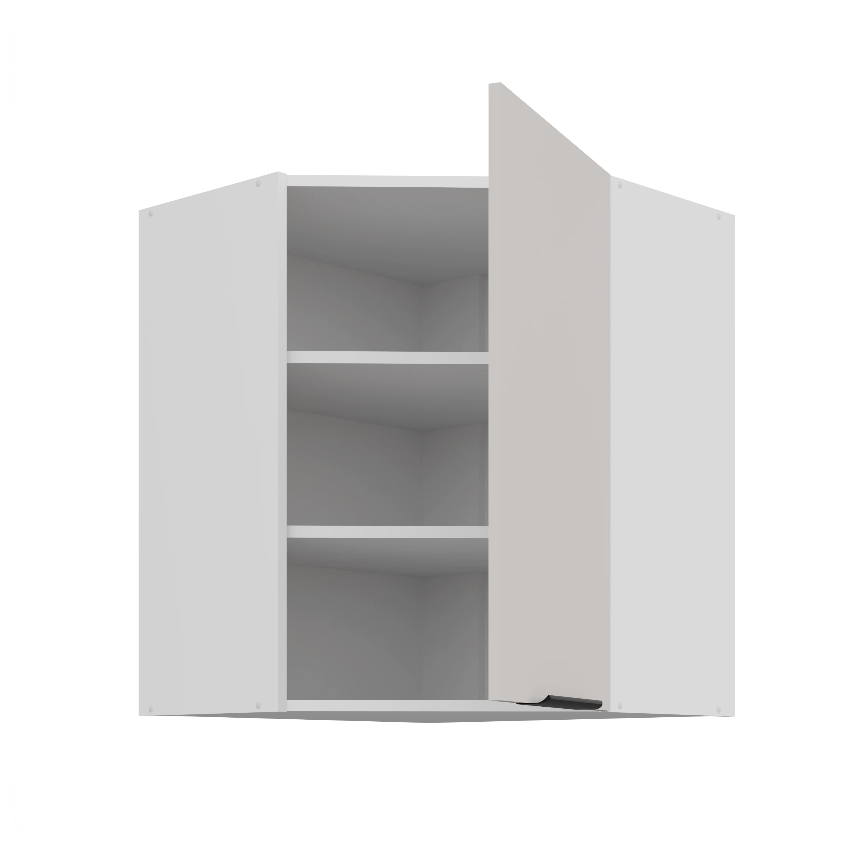 Szafka górna narożna 60 x 60 GN-72 1F (45°) to kompaktowa górna szafka narożna z jednym frontem – idealna do mniejszych kuchni lub lekkiej zabudowy górnej. Dzięki nachyleniu frontu pod kątem 45°, konstrukcja wygląda elegancko i nie przytłacza wnętrza.