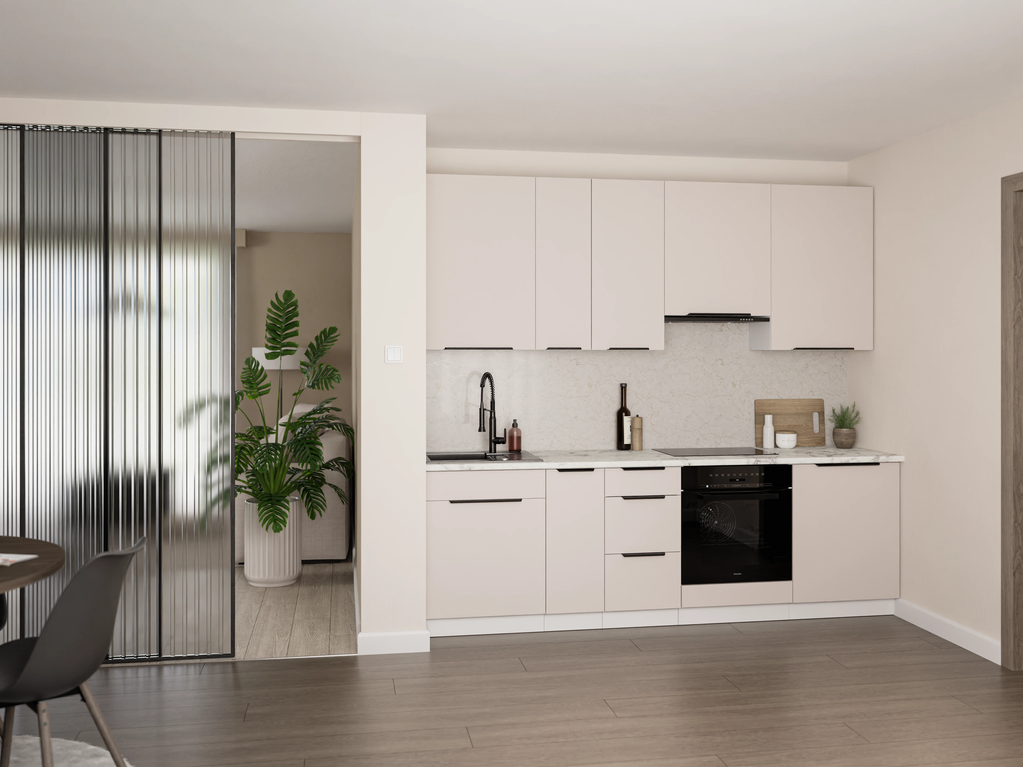 Kolekcja kuchni KASZMIR na białym korpusie to idealne rozwiązanie dla osób, które poszukują połączenia ponadczasowej estetyki, nowoczesnego designu oraz maksymalnej funkcjonalności. Subtelny odcień kaszmiru w zestawieniu z klasyczną bielą korpusu tworzy harmonijną, jasną i przytulną przestrzeń, która doskonale wpisuje się zarówno w nowoczesne, jak i klasyczne aranżacje wnętrz.