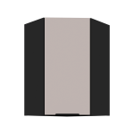 Szafka górna narożna 60 x 60 GN-90 1F (45°) z kolekcji KASZMIR - Jednoskrzydłowa wersja szafki narożnej o kącie 45° to propozycja dla osób ceniących nietuzinkowe układy i łatwiejszy dostęp do wnętrza. Jej geometryczna forma nadaje aranżacji dynamiki, a kaszmirowy front wprowadza do wnętrza przyjemne ciepło. Czarny korpus i uchwyt dopełniają całości, podkreślając elegancki kontrast. Szafka doskonale sprawdzi się w rogu nad blatem, gdzie potrzebna jest szybka dostępność i estetyczne domknięcie przestrzeni.