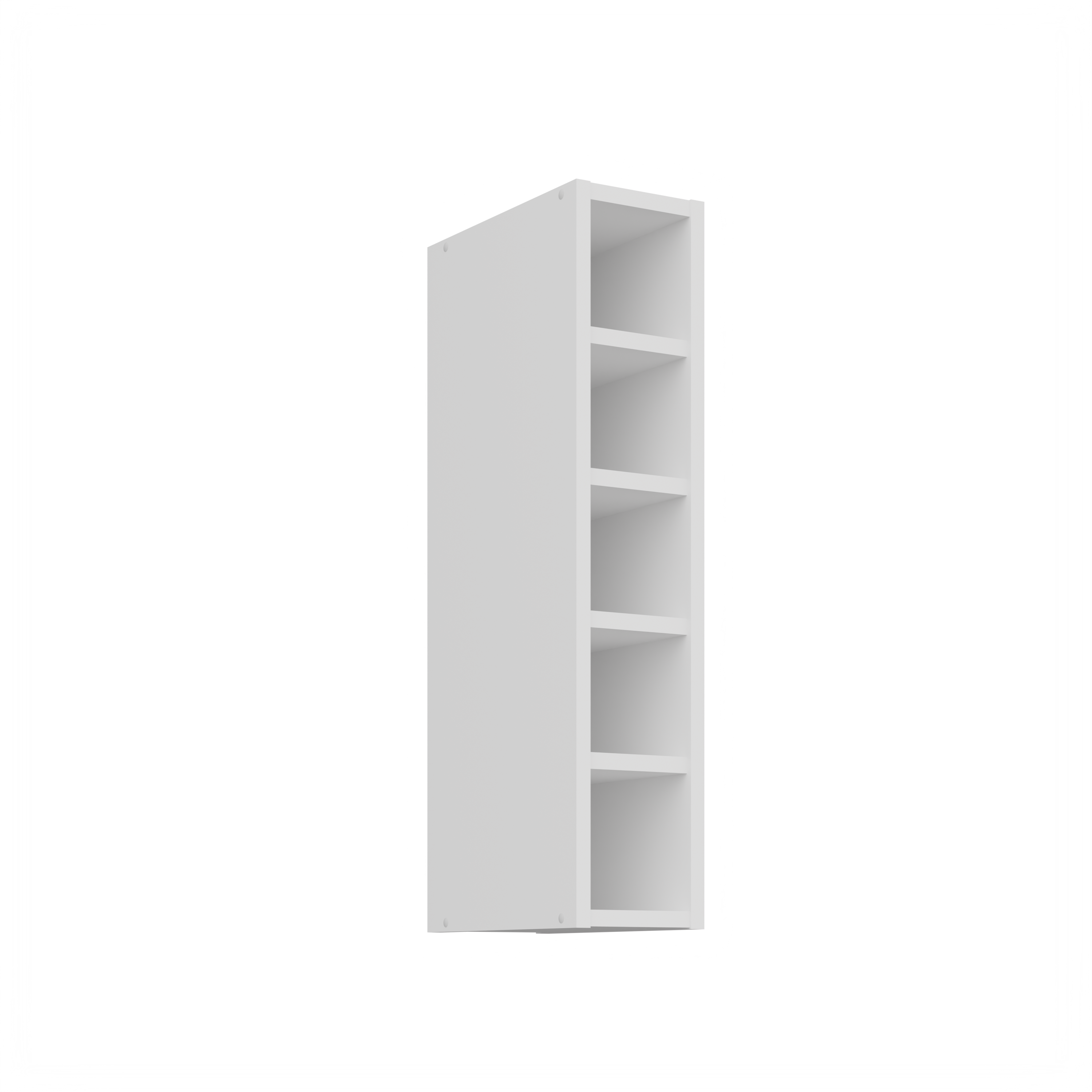 Wąska, otwarta szafka górna to świetny sposób na zagospodarowanie małej przestrzeni. Idealna do przechowywania przypraw, kubków lub butelek. Białe wykończenie sprawia, że wnętrze nabiera nowoczesnego, świeżego charakteru. Otwarta forma pozwala na przechowywanie przypraw, butelek lub elementów dekoracyjnych, które są zawsze pod ręką.