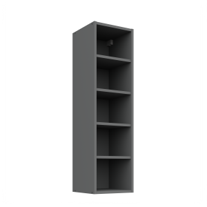 Wyższa wersja otwartej szafki, która świetnie sprawdzi się jako element nowoczesnej zabudowy kuchennej. Wysokość 108 cm daje jeszcze więcej przestrzeni na przechowywanie lub dekoracyjne eksponowanie akcesoriów. Otwarta konstrukcja w antracytowym korpusie umożliwia wyeksponowanie dekoracyjnych elementów – kubków, kieliszków czy designerskich dodatków.
