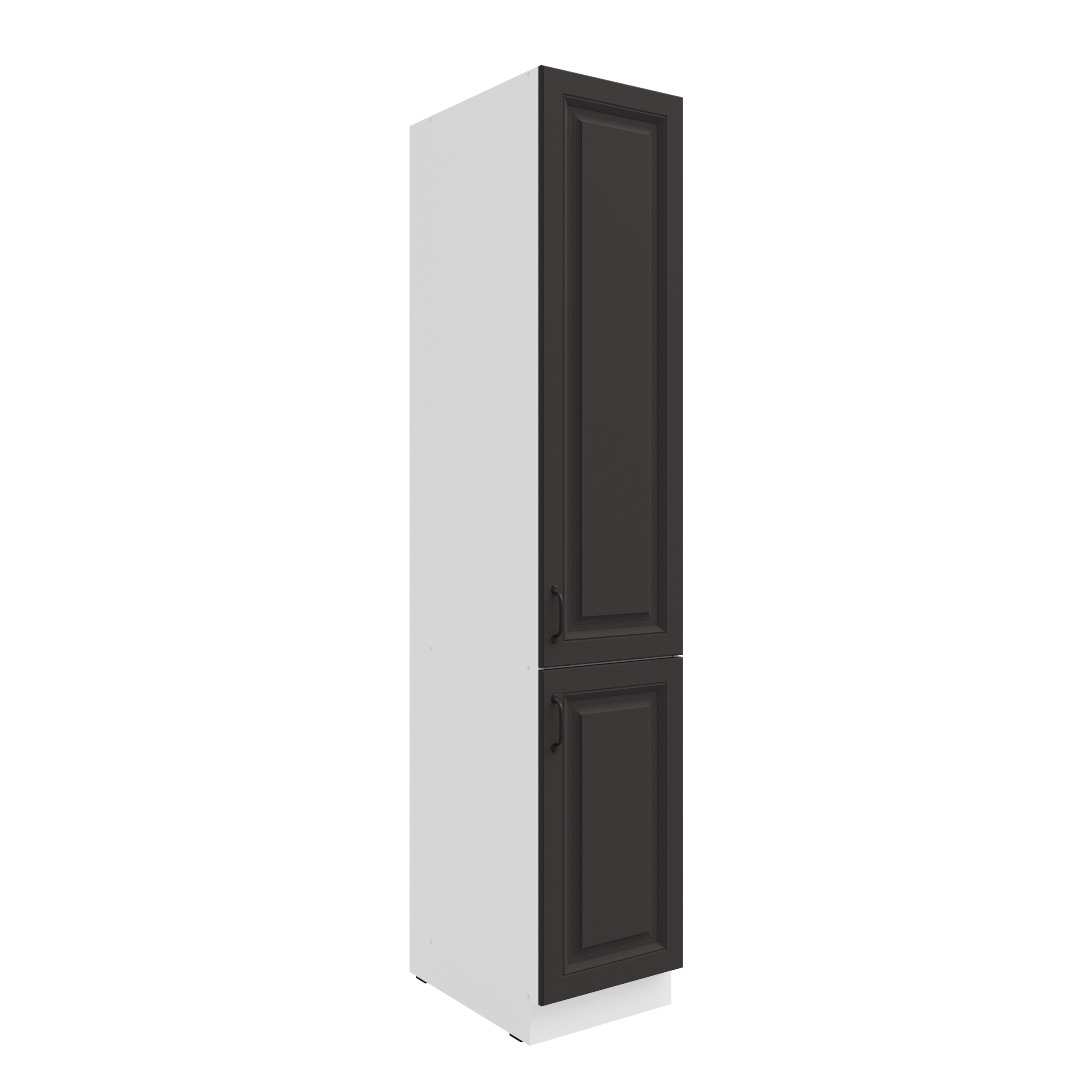 Słupek kuchenny 40 DK-210 2F z kolekcji ATENA to wysokiej klasy szafka, która doskonale sprawdzi się jako miejsce do przechowywania większych zapasów, naczyń lub sprzętu AGD. Dzięki swojej wysokości i dwóm pojemnym komorom pozwala maksymalnie wykorzystać przestrzeń pionową, co jest szczególnie cenne w mniejszych kuchniach. Grafitowe, matowe fronty z dekoracyjnym frezowaniem oraz czarne uchwyty nadają meblowi elegancki i ponadczasowy charakter, idealnie wpisując się zarówno w nowoczesne, jak i klasyczne wnętrza.