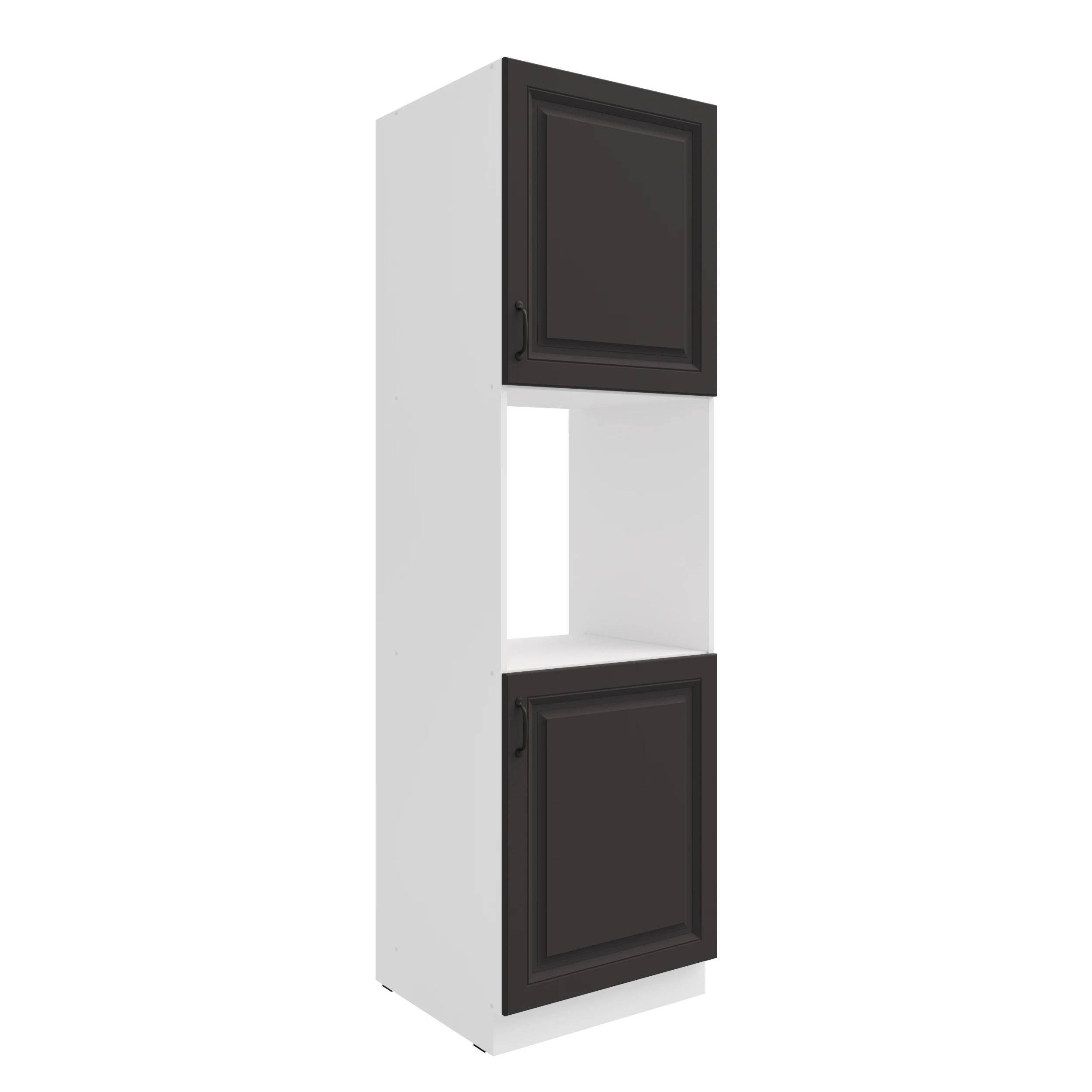 Szafka kuchenna 60 DP-210 2F z kolekcji ATENA to słupek przeznaczony do zabudowy piekarnika, który łączy nowoczesny design z praktyczną funkcjonalnością. Wyposażona w dwie strefy przechowywania z półkami oraz wnękę na piekarnik na ergonomicznej wysokości, pozwala wygodnie korzystać ze sprzętu, jednocześnie oferując miejsce na naczynia, formy lub zapasy. Matowe, grafitowe fronty z dekoracyjnym frezowaniem i czarne uchwyty tworzą elegancką całość, doskonale wpisując się w spójną i estetyczną zabudowę kuchenną.