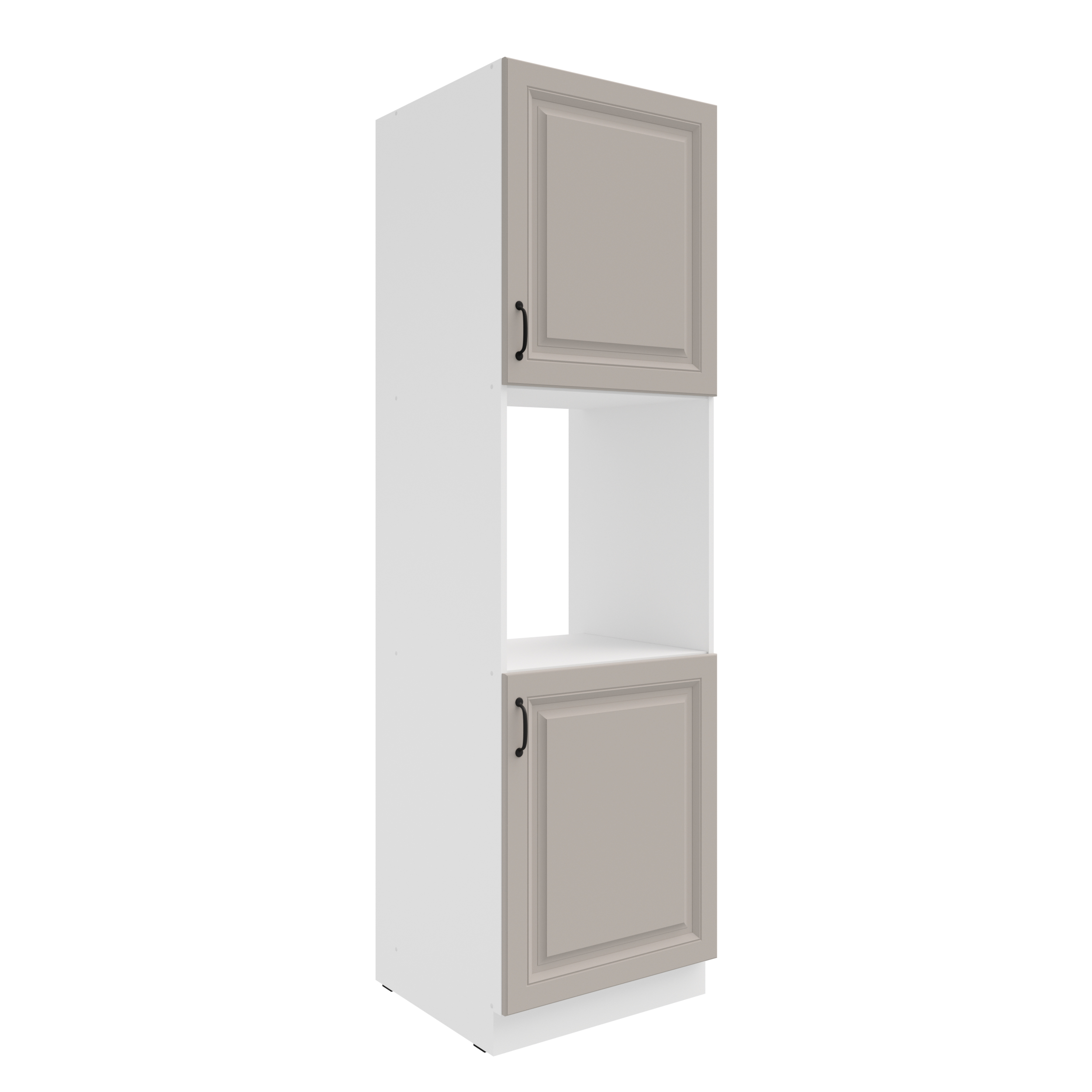 Szafka kuchenna 60 DP-210 2F z kolekcji ATENA to słupek przeznaczony do zabudowy piekarnika, który łączy nowoczesny design z praktyczną funkcjonalnością. Wyposażona w dwie strefy przechowywania z półkami oraz wnękę na piekarnik na ergonomicznej wysokości, pozwala wygodnie korzystać ze sprzętu, jednocześnie oferując miejsce na naczynia, formy lub zapasy. Estetyczny kontrast jasnych powierzchni z czarnymi uchwytami przyciąga wzrok i podkreśla elegancję kolekcji ATENA.