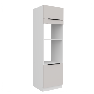 Szafka kuchenna słupek 60 DPM-210 2F z kolekcji KASZMIR to nowoczesna i funkcjonalna szafka przeznaczona do zabudowy piekarnika i kuchenki mikrofalowej w jednym, eleganckim module. Przemyślane rozmieszczenie wnęk i półek zwiększa funkcjonalność kuchni, a elegancki wygląd – z kaszmirowymi frontami i korpusem w odcieniu białym– wpisuje się w aktualne trendy aranżacyjne.