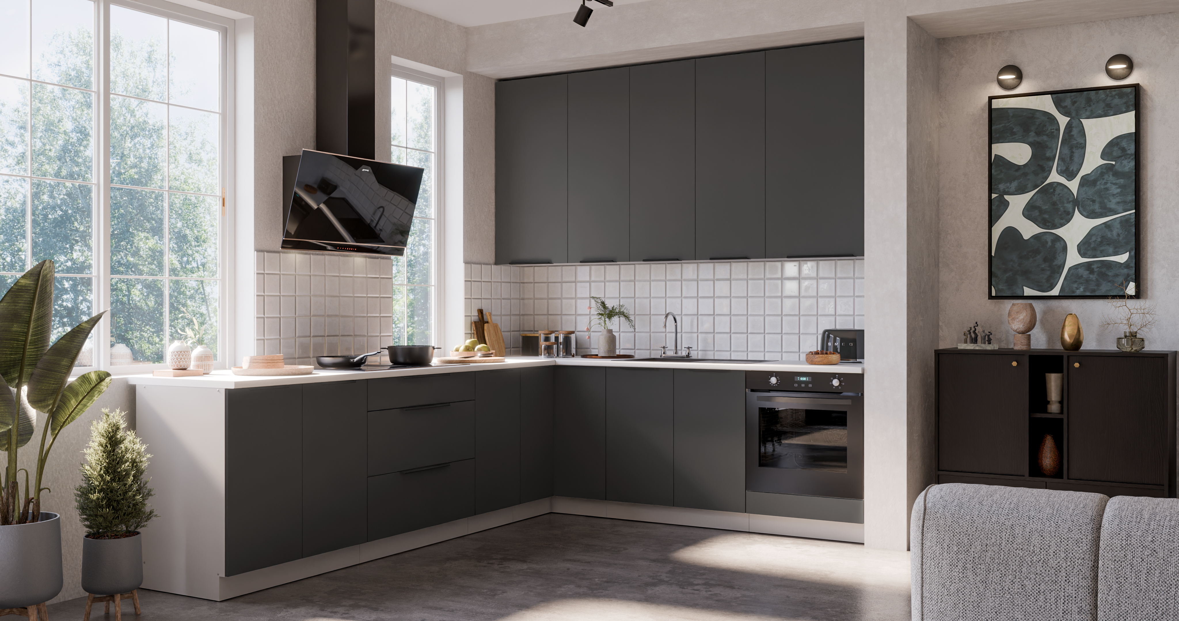 CALIA to nowoczesna kolekcja mebli kuchennych, łącząca styl, funkcjonalność i najwyższą jakość wykonania. Jej największym wyróżnikiem są fronty pokryte innowacyjną powłoką ANTI-FINGERPRINT, która skutecznie ogranicza powstawanie śladów palców. Dzięki niej powierzchnie mebli pozostają czyste i estetyczne na dłużej, a matowe wykończenie frontów nadaje im elegancki, nowoczesny charakter.