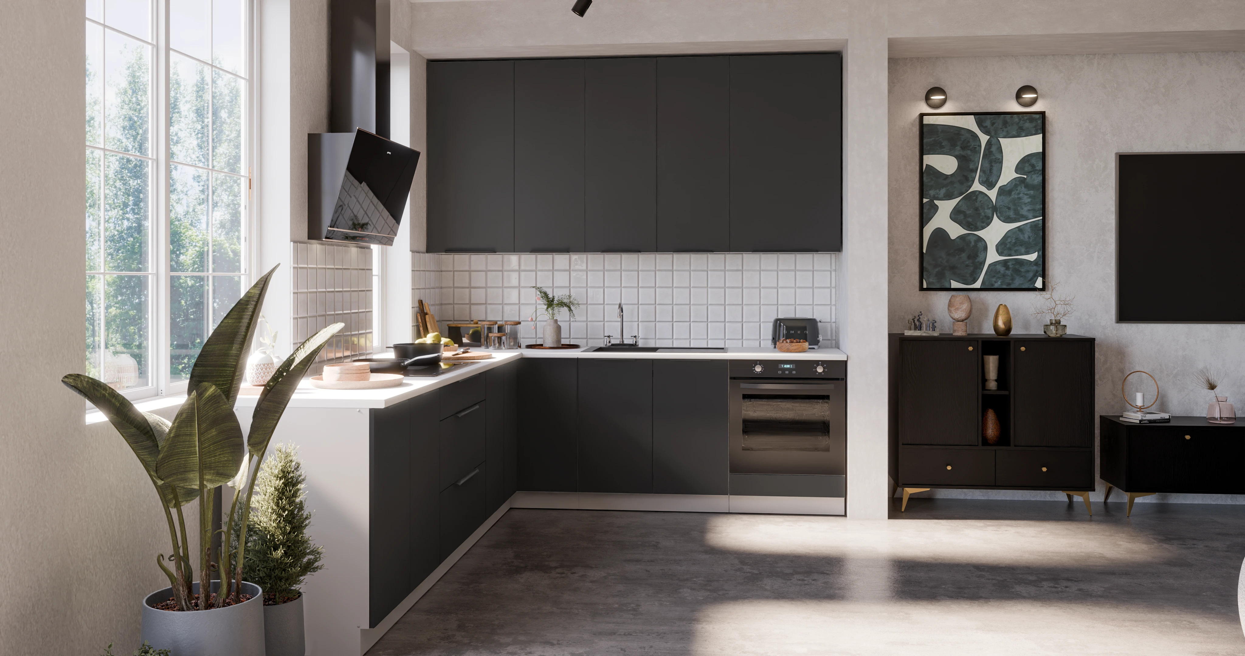 ☑️ Fronty z powłoką ANTI-FINGERPRINT – nowoczesna technologia, która skutecznie ogranicza ślady palców i ułatwia utrzymanie mebli w idealnej czystości. Matowe wykończenie nadaje frontom elegancki wygląd i sprawia, że są przyjemne w dotyku.