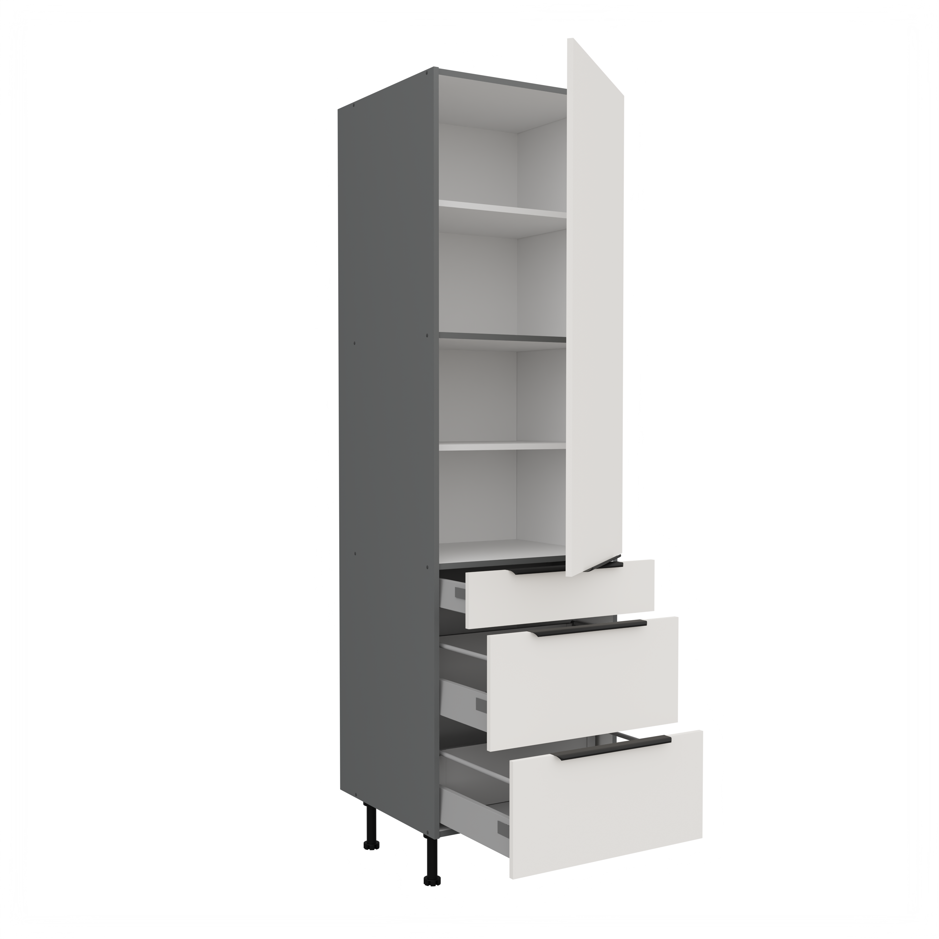 Szafka kuchenna słupek CALIA 60 DKS-210 3S 1F CRYSTAL WHITE / ANTRACYT z powłoką ANTI FINGERPRINT