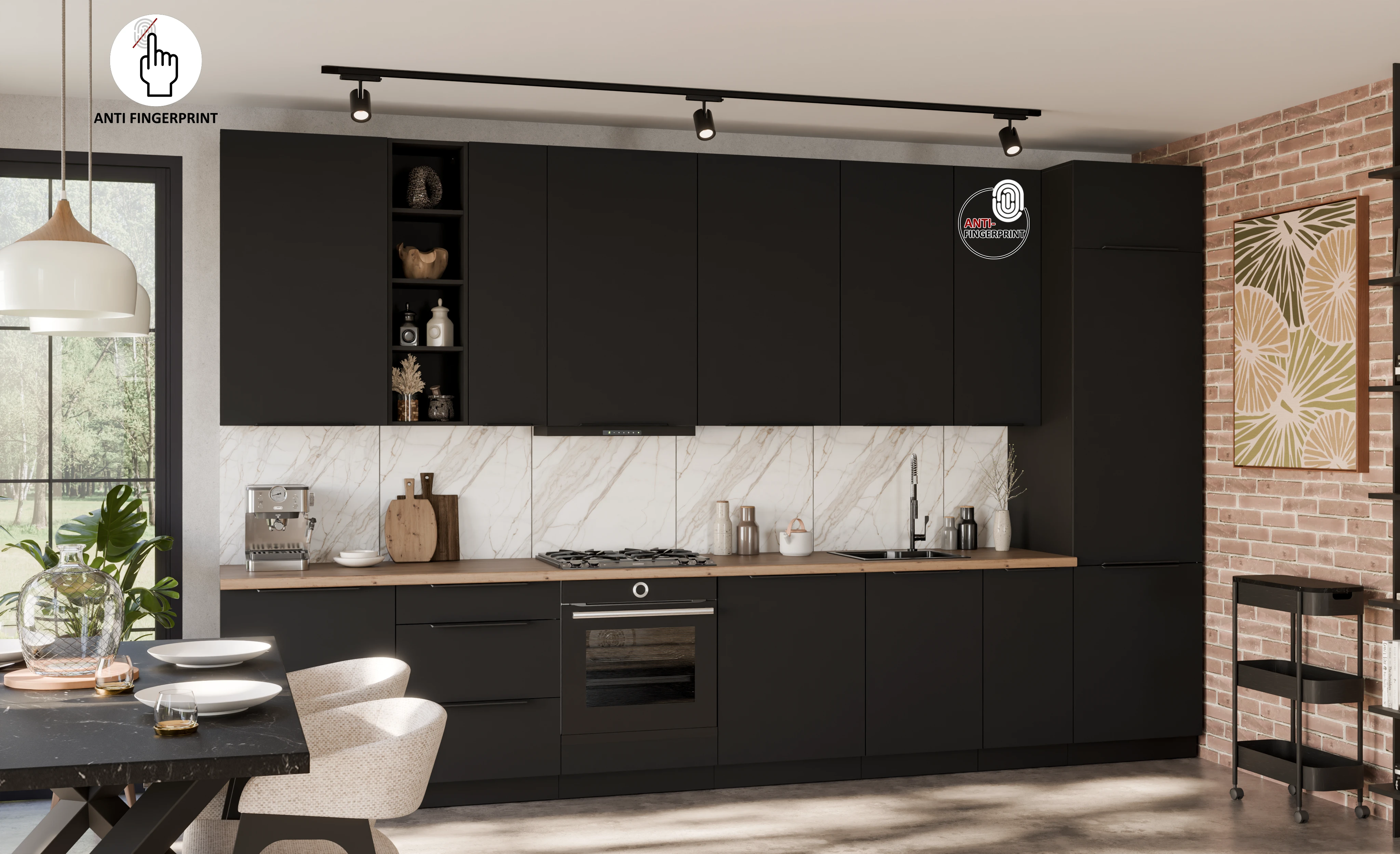 ☑️ Fronty z powłoką ANTI-FINGERPRINT – nowoczesna technologia, która skutecznie ogranicza ślady palców i ułatwia utrzymanie mebli w idealnej czystości. Matowe wykończenie nadaje frontom elegancki wygląd i sprawia, że są przyjemne w dotyku.