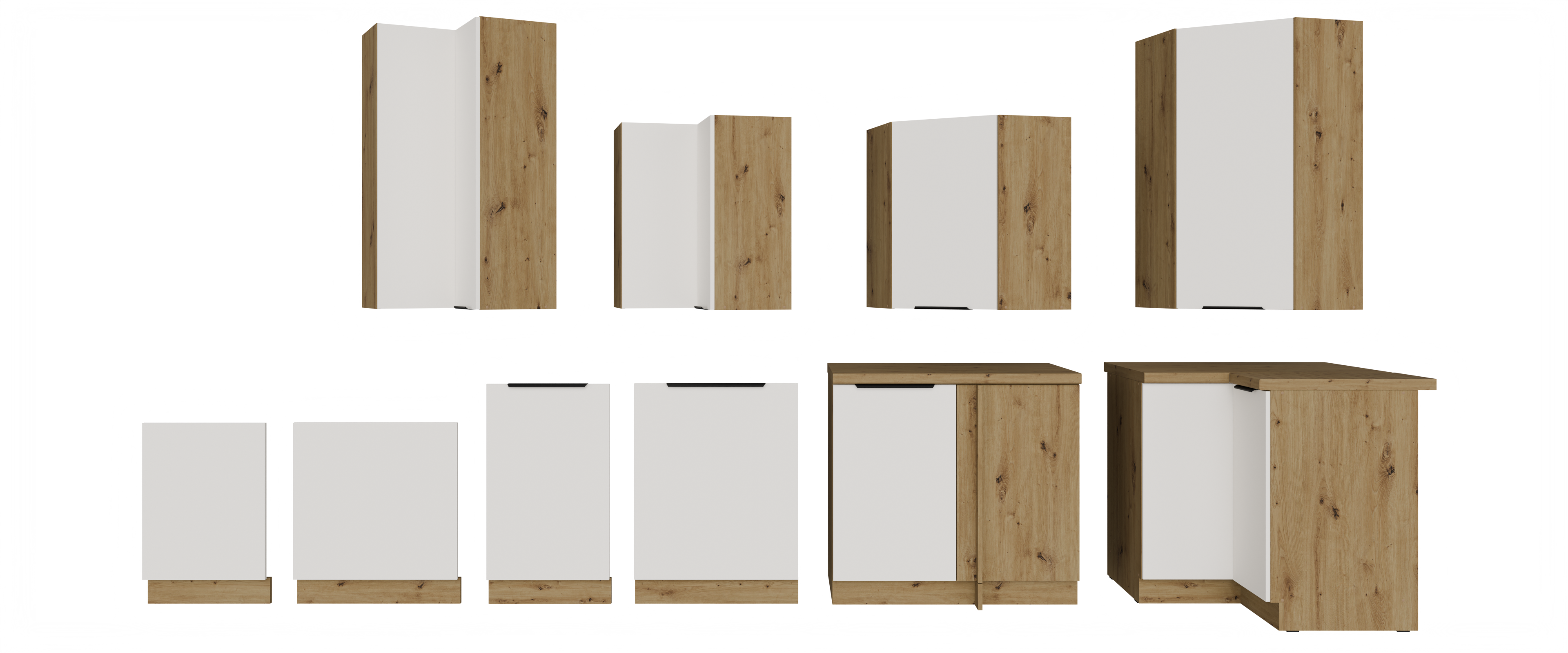 ☑️ Różne wysokości szafek górnych – kolekcja oferuje szafki wiszące w trzech wariantach: 72 cm, 90 cm i 108 cm, co pozwala idealnie dopasować zabudowę do wymiarów i charakteru każdej kuchni.