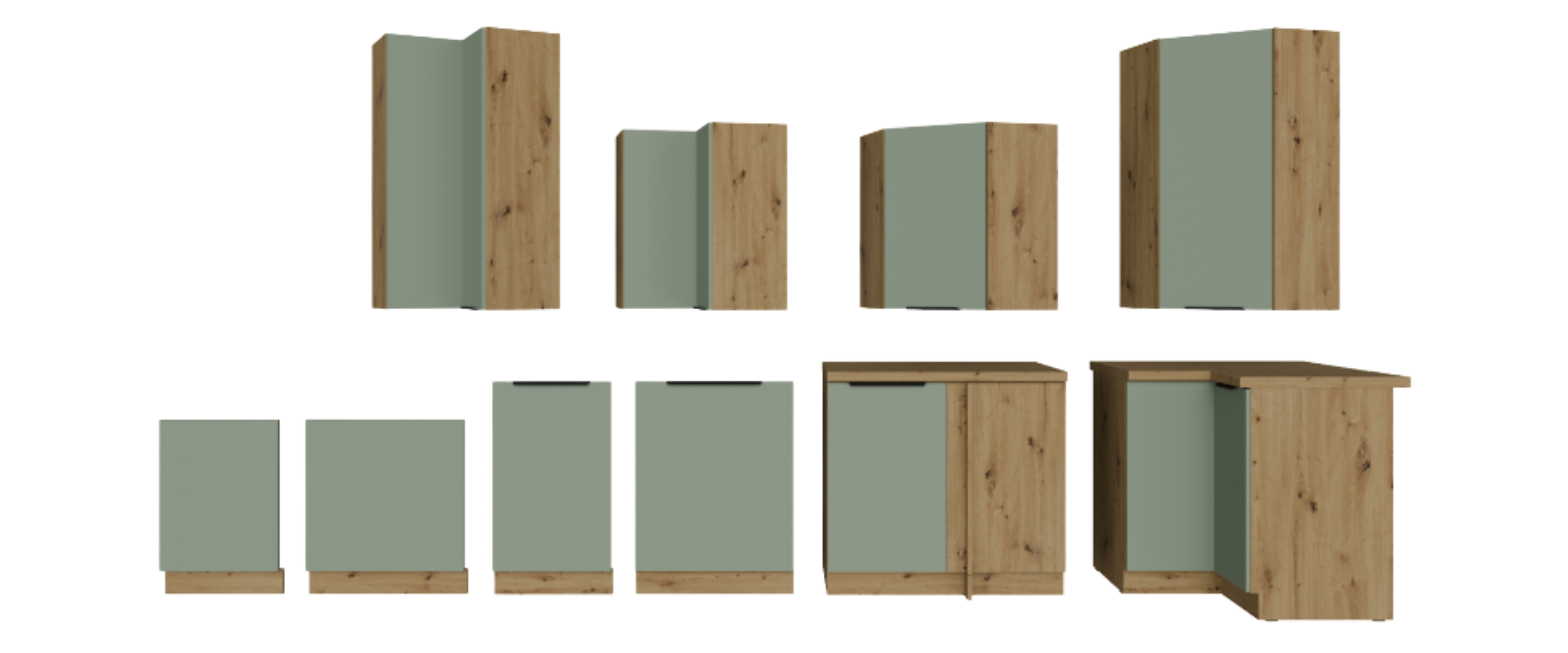 ☑️ Różne wysokości szafek górnych – kolekcja oferuje szafki wiszące w trzech wariantach: 72 cm, 90 cm i 108 cm, co pozwala idealnie dopasować zabudowę do wymiarów i charakteru każdej kuchni.