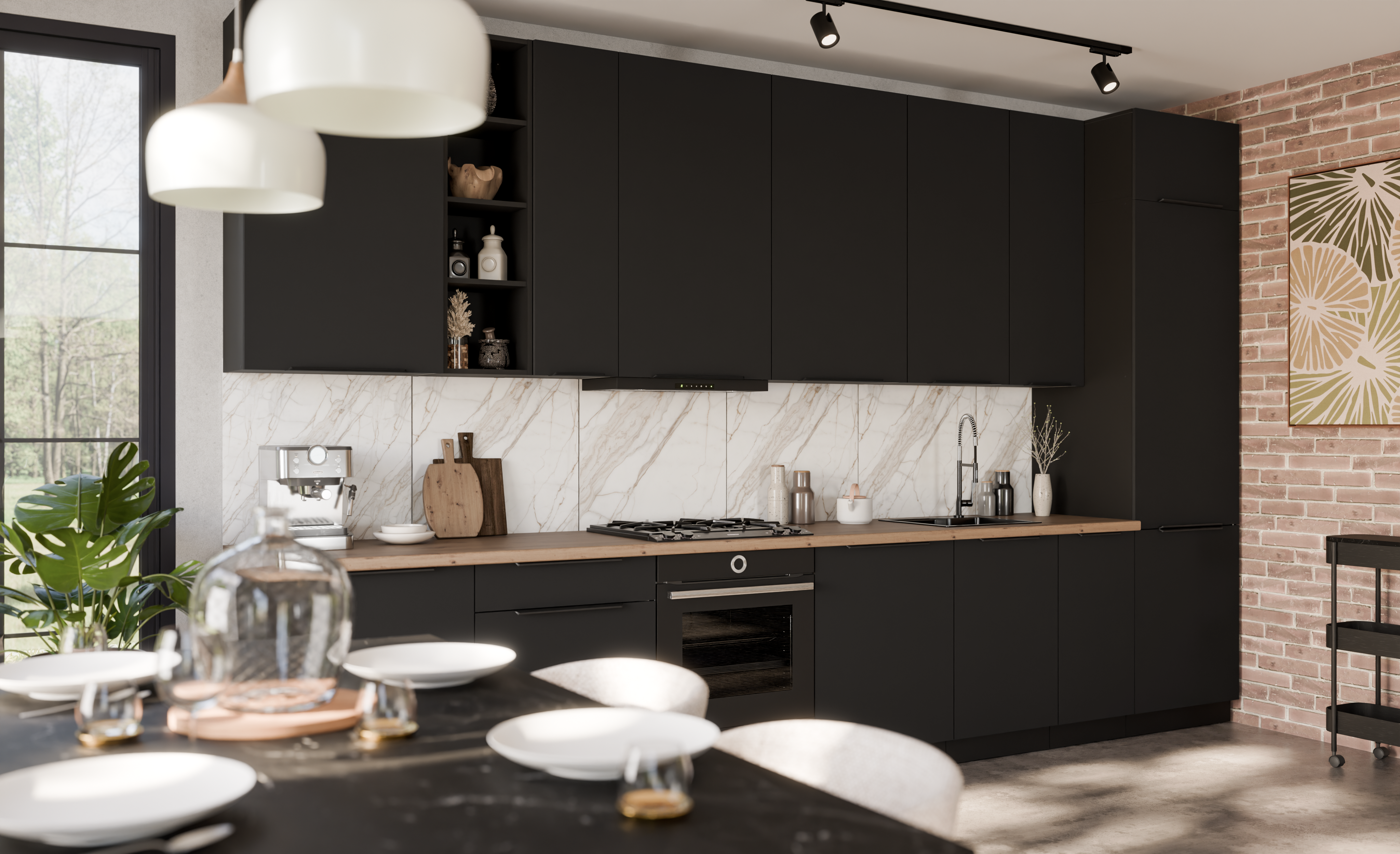 CALIA to nowoczesna kolekcja mebli kuchennych, łącząca styl, funkcjonalność i najwyższą jakość wykonania. Jej największym wyróżnikiem są fronty pokryte innowacyjną powłoką ANTI-FINGERPRINT, która skutecznie ogranicza powstawanie śladów palców. Dzięki niej powierzchnie mebli pozostają czyste i estetyczne na dłużej, a matowe wykończenie frontów nadaje im elegancki, nowoczesny charakter.