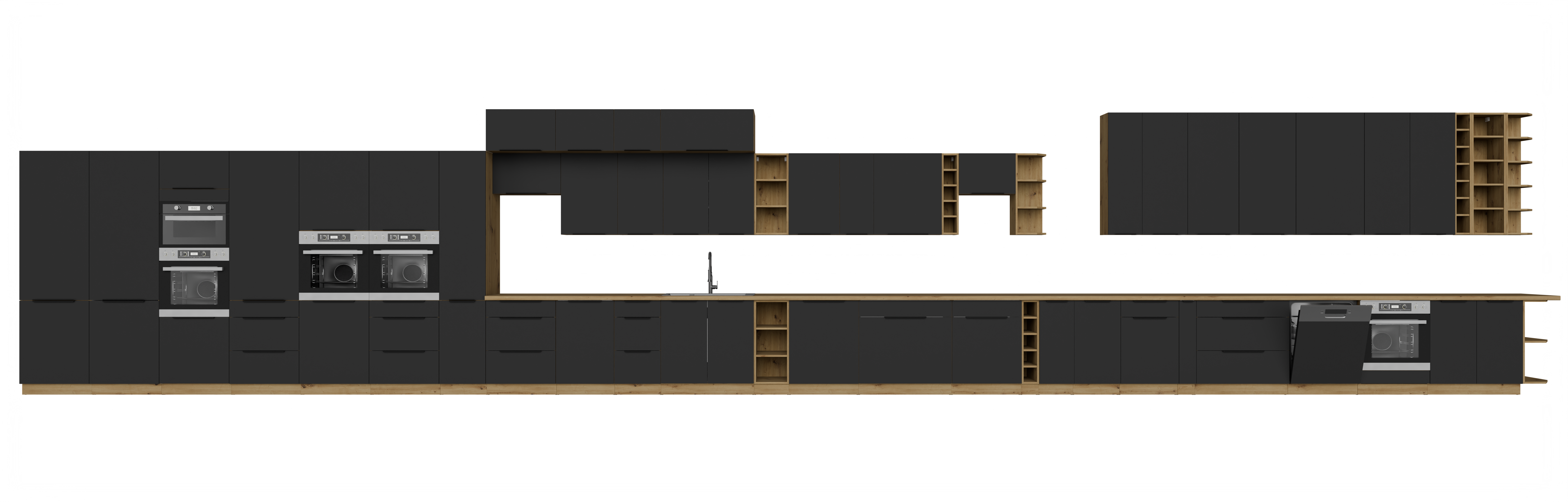 Fronty dostępne są w pięciu kolorach: crystal white, aquamarine, sandgrau, grafit i czarny, natomiast korpusy w czterech wariantach: biały, dąb artisan, czarny oraz antracyt. Tak szeroka gama pozwala tworzyć harmonijne lub kontrastowe zestawienia dopasowane do każdego wnętrza.