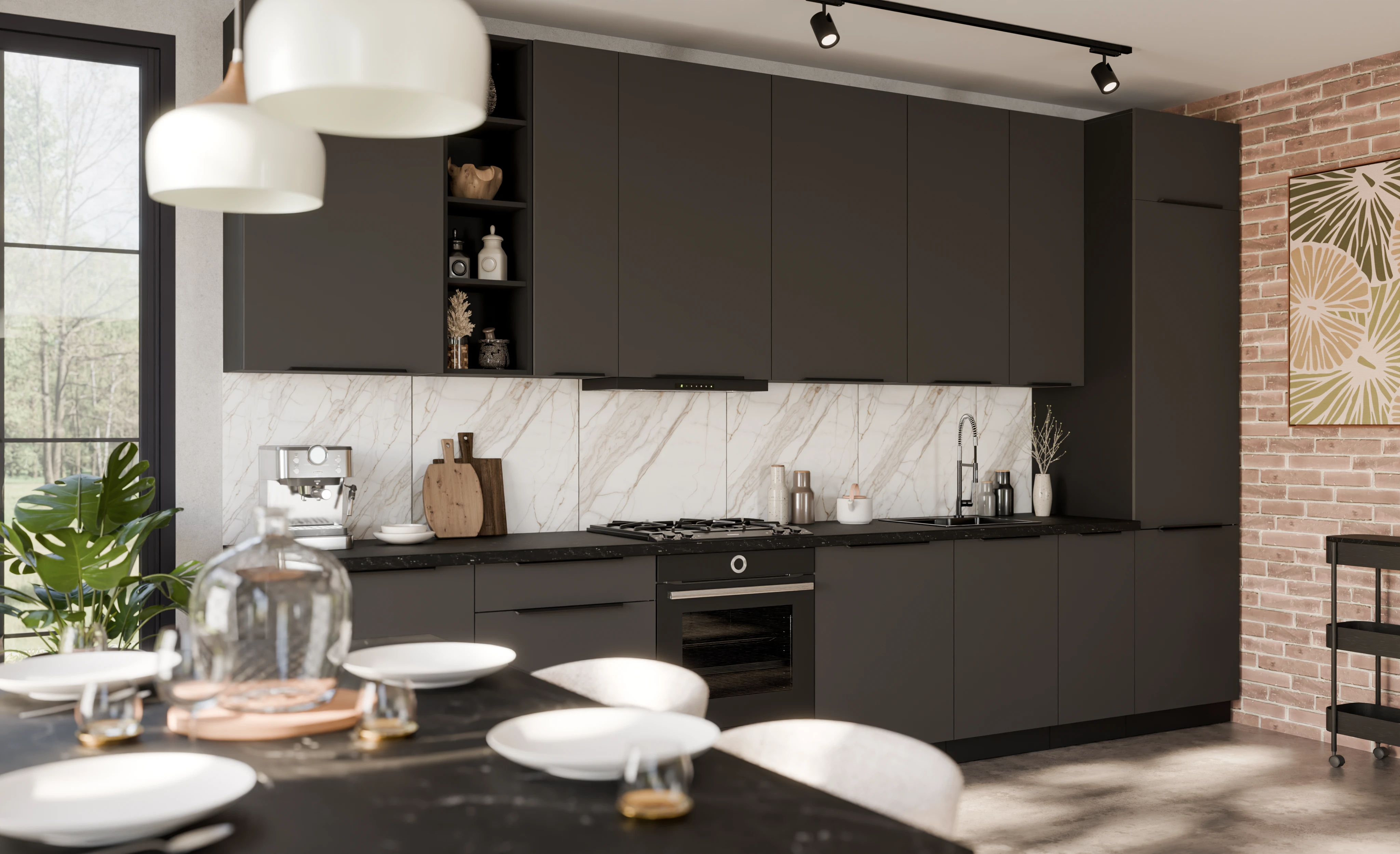 Szafki kuchenne z kolekcji CALIA zostały wyposażone w prowadnice PREMIUM BOX oraz system cichego domyku, które zapewniają komfort użytkowania i trwałość na lata. To kuchnia, która zachwyca wyglądem i pozostaje praktyczna każdego dnia.