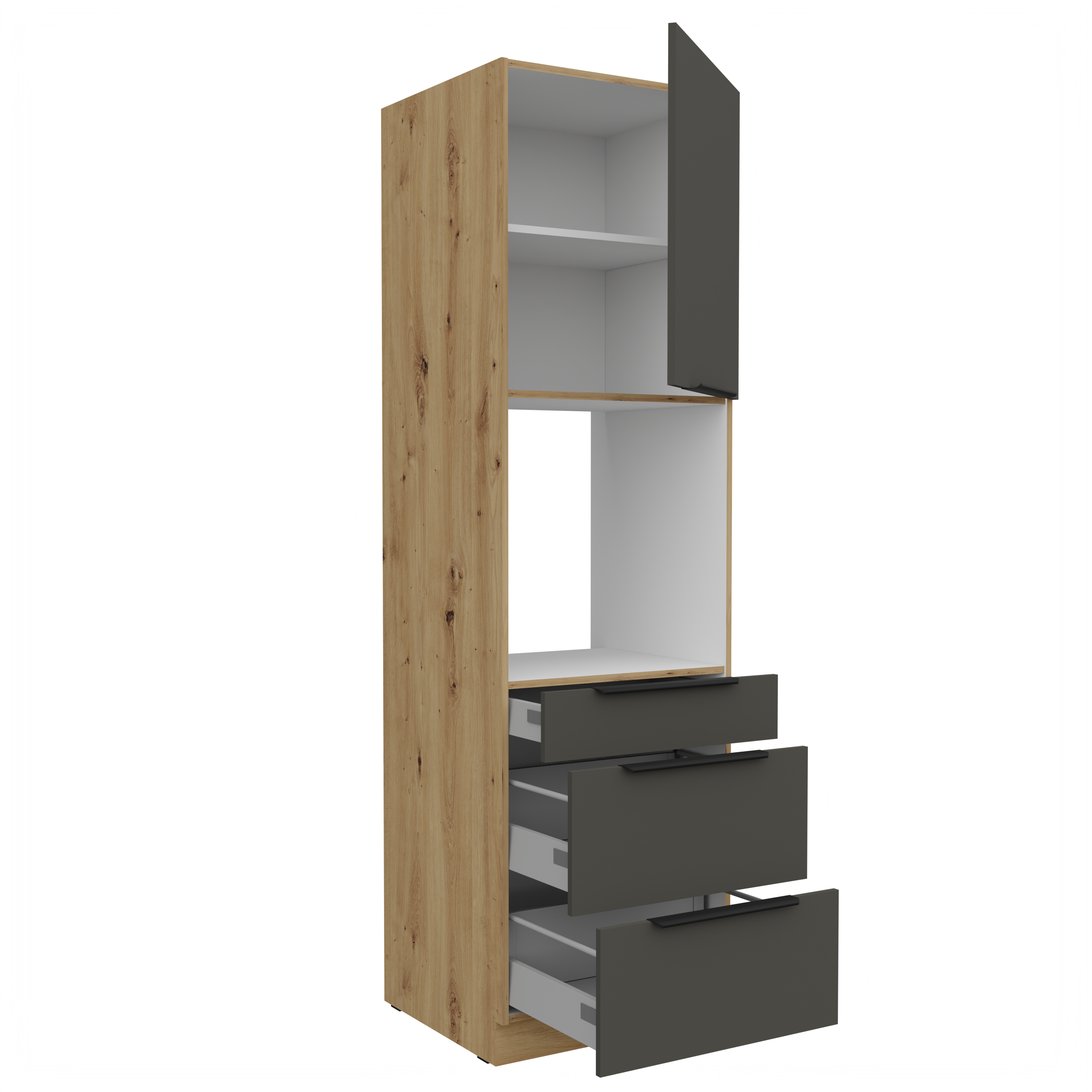 Szafka kuchenna słupek CALIA 60 DPS-210 3S 1F GRAFIT MAT / DĄB ARTISAN z powłoką ANTI FINGERPRINT