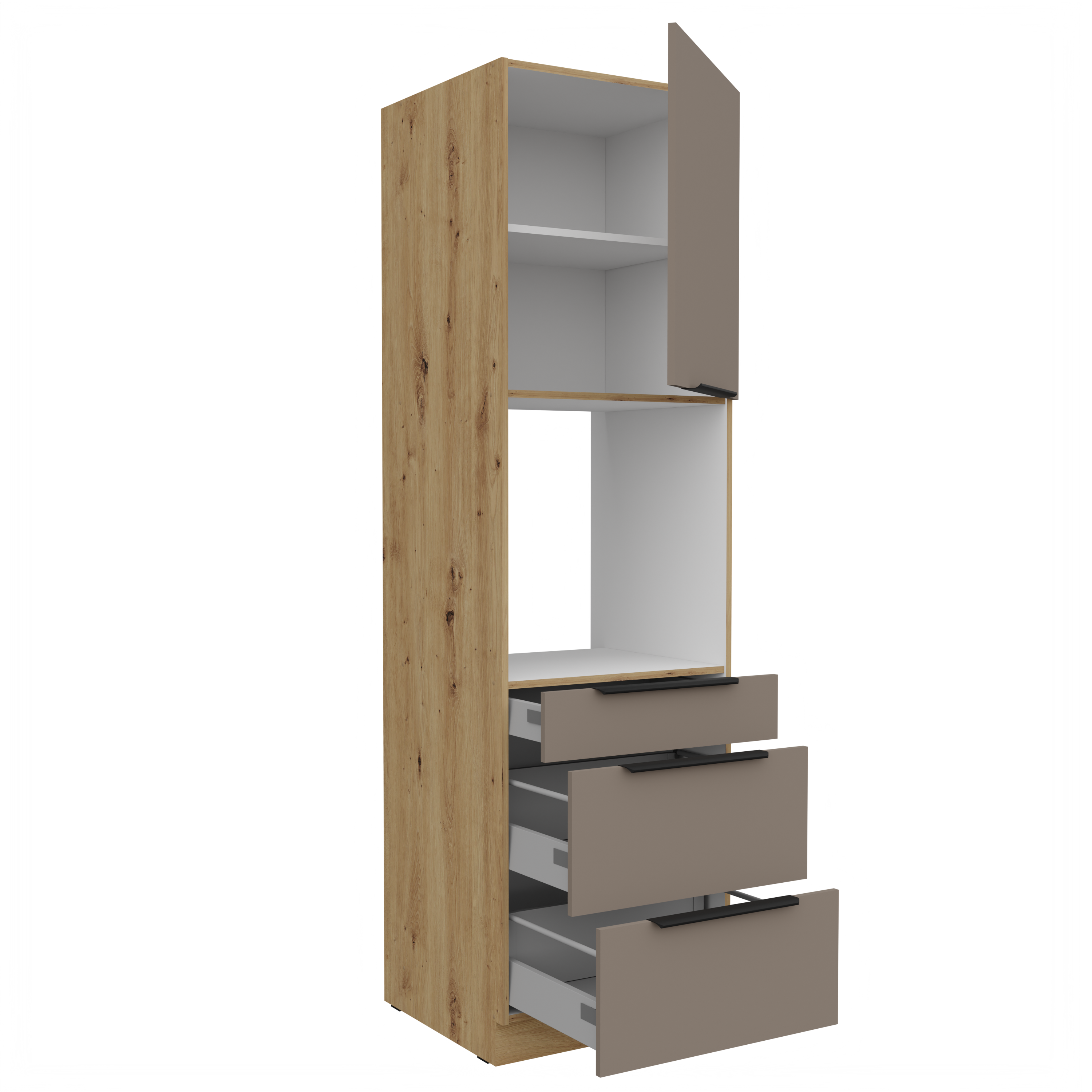 Szafka kuchenna słupek CALIA 60 DPS-210 3S 1F SANDGRAU / DĄB ARTISAN z powłoką ANTI FINGERPRINT
