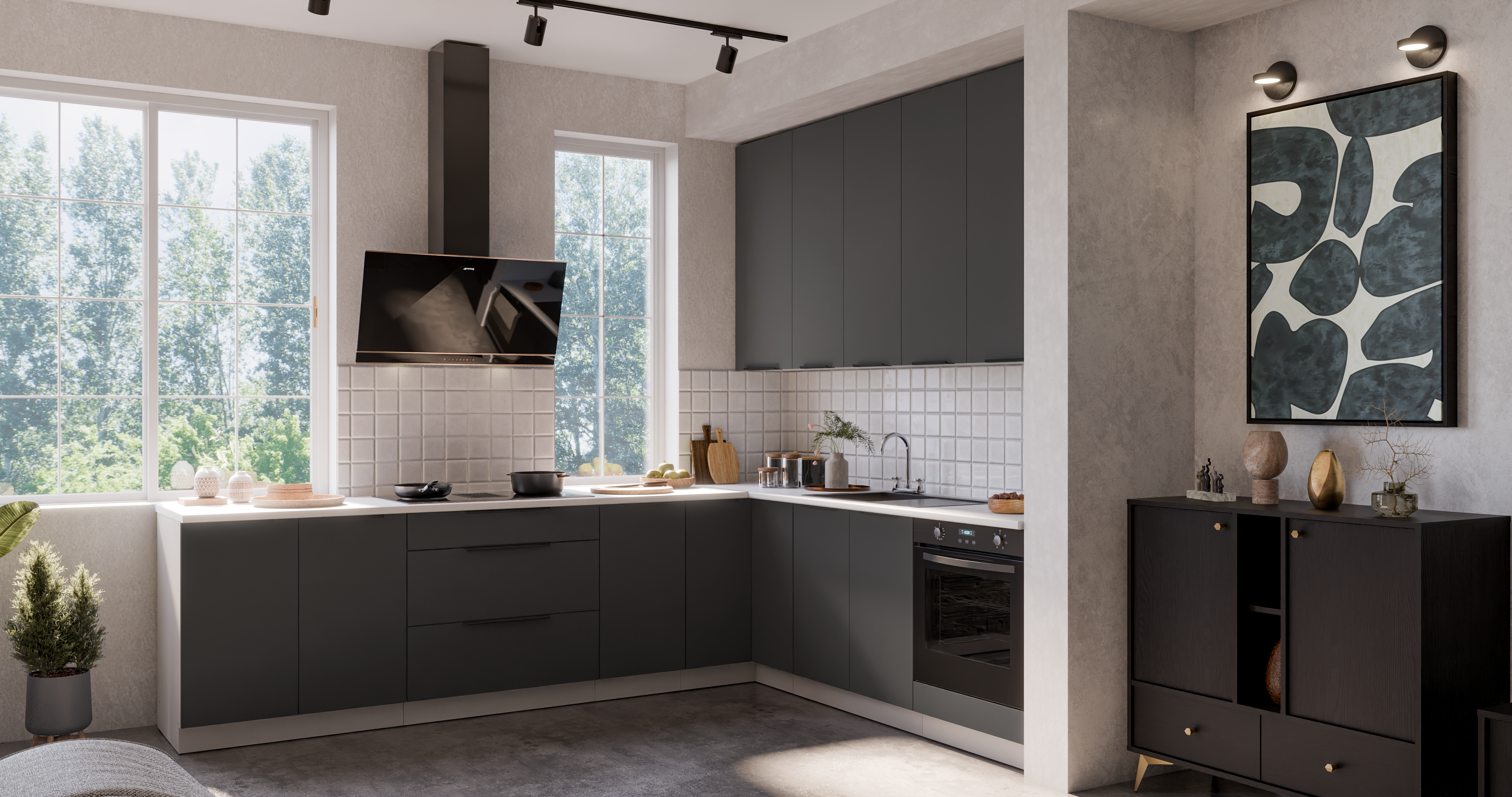 CALIA to nowoczesna kolekcja mebli kuchennych, łącząca styl, funkcjonalność i najwyższą jakość wykonania. Jej największym wyróżnikiem są fronty pokryte innowacyjną powłoką ANTI-FINGERPRINT, która skutecznie ogranicza powstawanie śladów palców. Dzięki niej powierzchnie mebli pozostają czyste i estetyczne na dłużej, a matowe wykończenie frontów nadaje im elegancki, nowoczesny charakter.