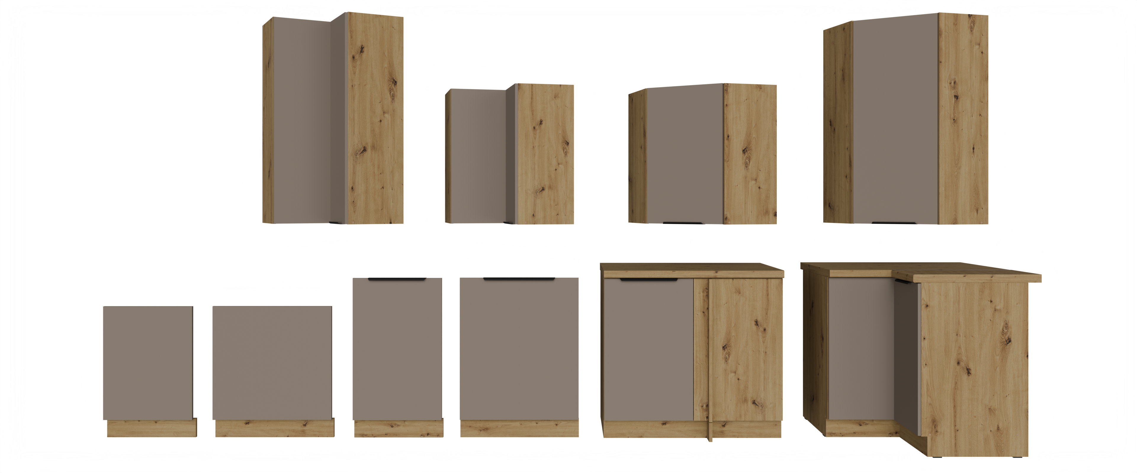 Szafka kuchenna słupek stojący 60 LO-210 2F CALIA - Sandgrau / Dąb Artisan z powłoką ANTI FINGERPRINT