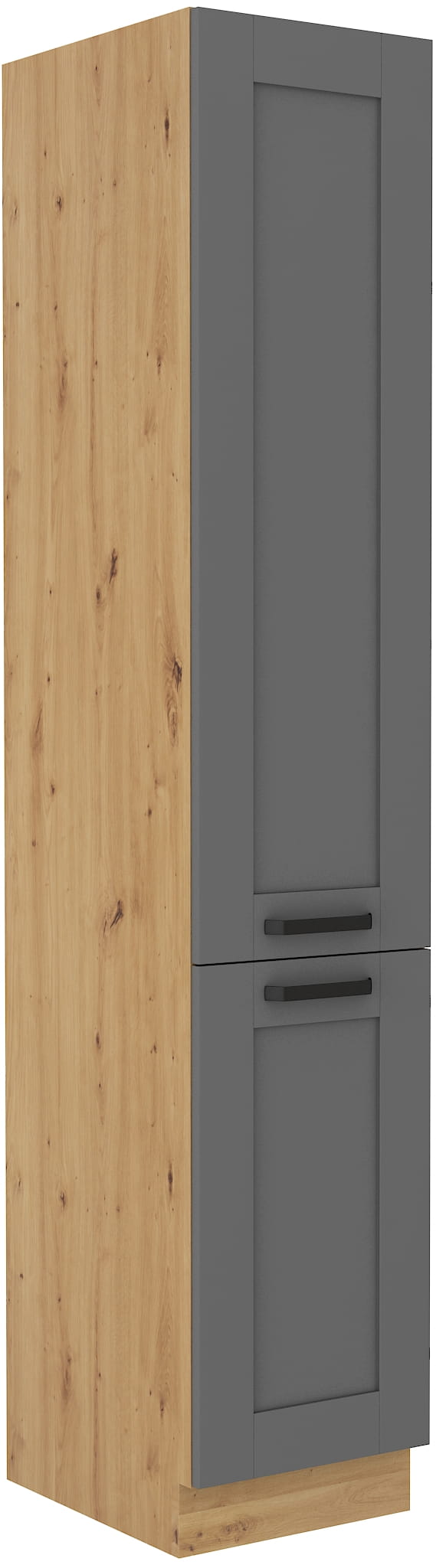 LILA 40 DK-210 2F to wysoka, smukła szafka o szerokości 40 cm, zaprojektowana z myślą o zagospodarowaniu węższych przestrzeni. Idealna jako dodatkowa spiżarka, miejsce na chemię gospodarczą lub sprzęt AGD.