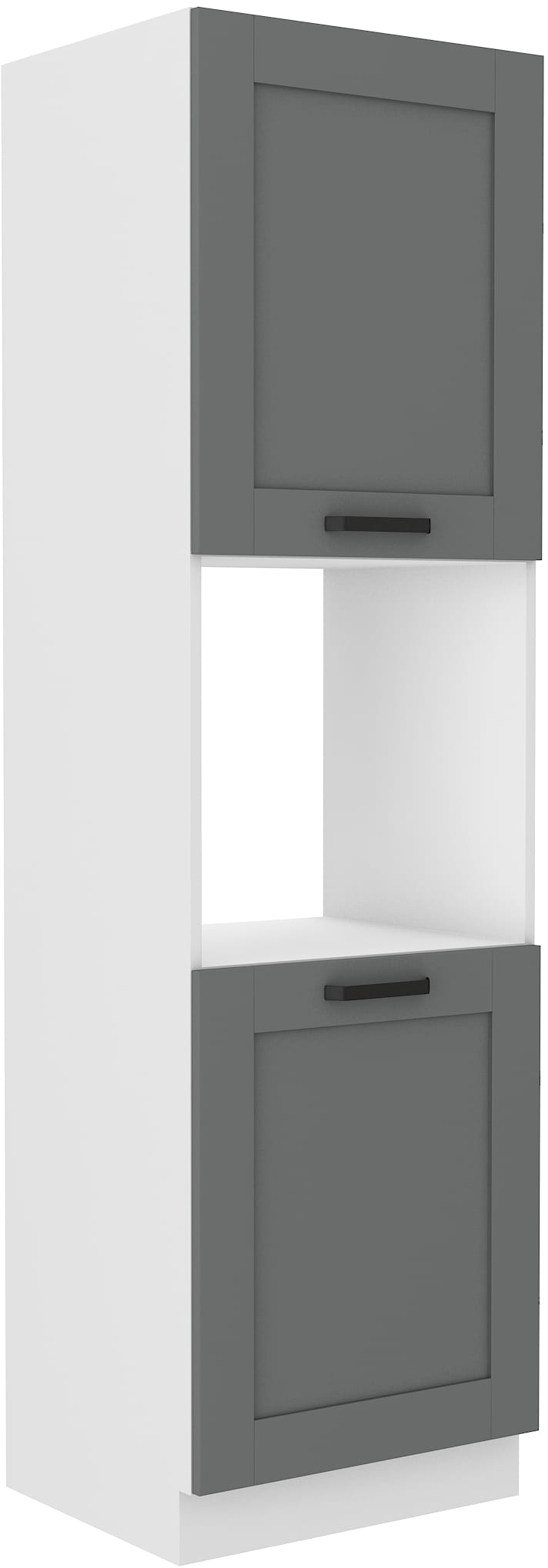 LILA 60 DP-210 2F to nowoczesna szafka typu słupek, przeznaczona do zabudowy piekarnika. Wyposażona w dwa fronty – dolny i górny – pozwala estetycznie wkomponować sprzęt AGD w zabudowę kuchenną.