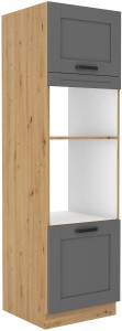 Ten model to kompleksowa szafka do zabudowy piekarnika i mikrofali – LILA 60 DPM-210 2F posiada dwie specjalnie zaprojektowane wnęki na sprzęty AGD, rozmieszczone ergonomicznie. Górna i dolna część frontów oferują miejsce na przechowywanie produktów, form do pieczenia czy akcesoriów kuchennych.