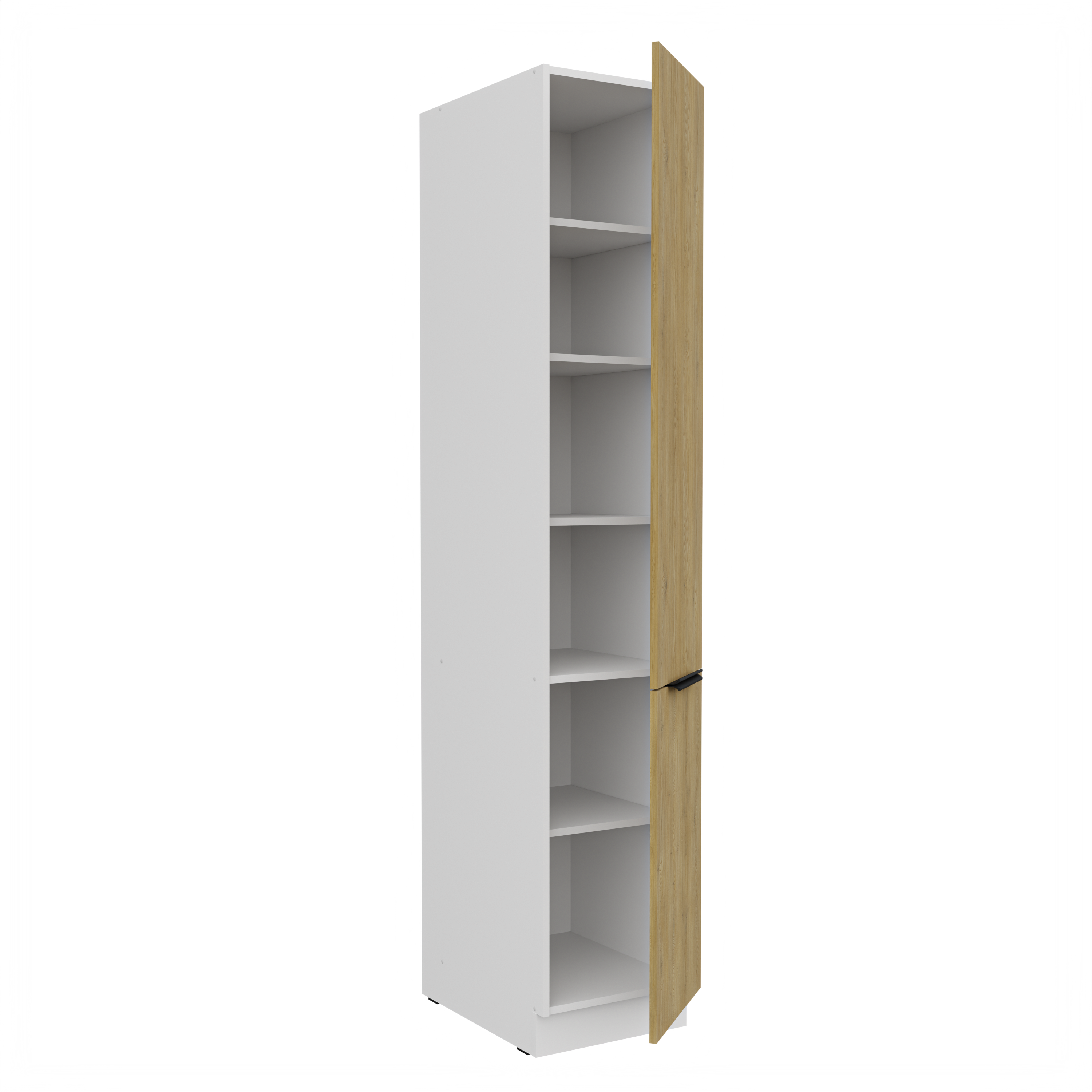 ☑️ Praktyczność i funkcjonalność – szafka zapewnia przestronne wnętrze z półkami, które pozwalają wygodnie przechowywać naczynia, produkty spożywcze i akcesoria kuchenne. Smukła forma sprawia, że mebel świetnie sprawdzi się w mniejszych kuchniach lub jako uzupełnienie większej zabudowy.