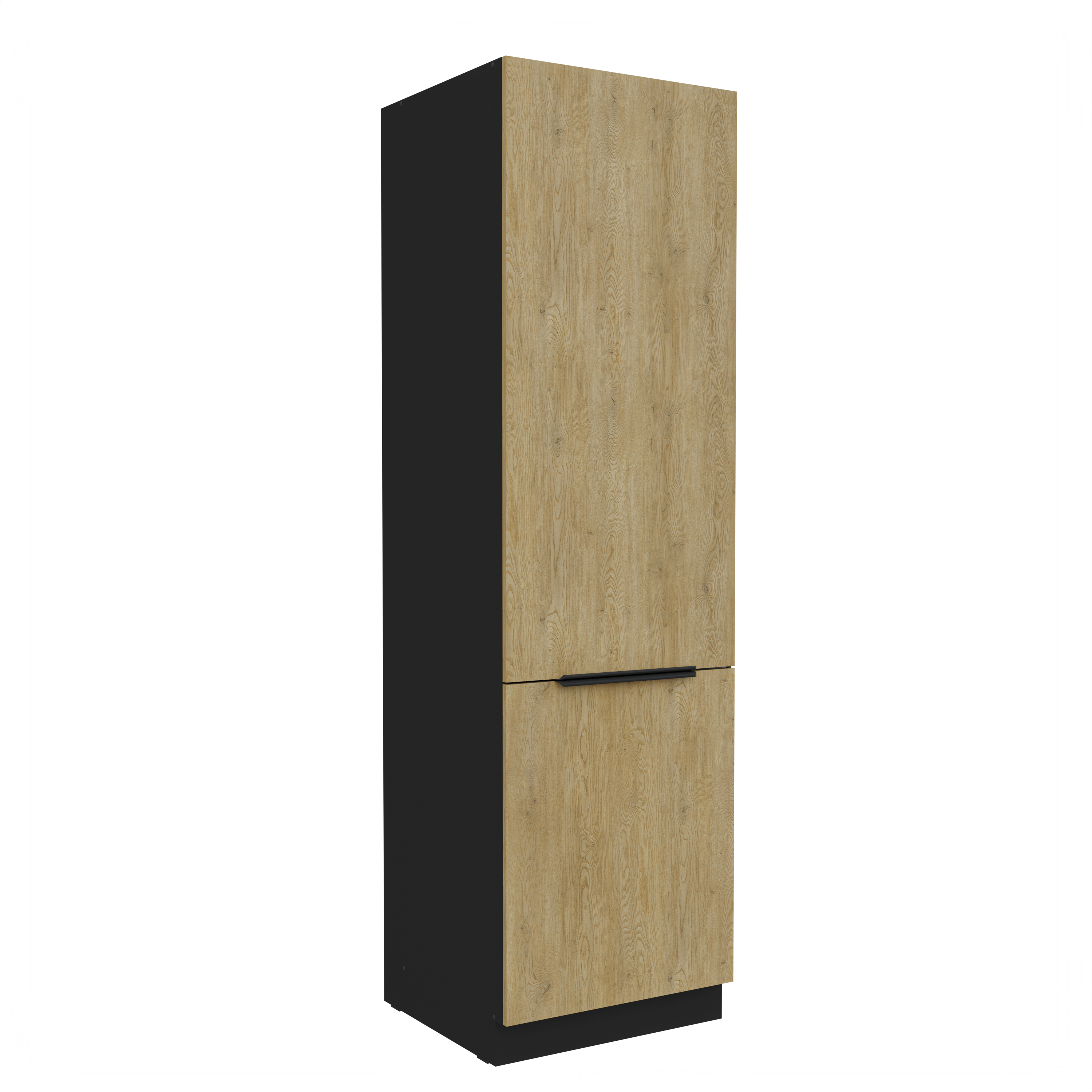 Szafka kuchenna LUME 60 LO-210 2F słupek do zabudowy lodówki, Dąb Cremona / Czarny