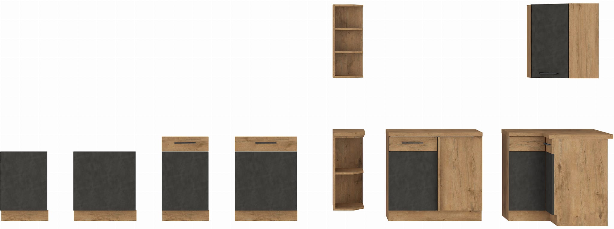 - Szafki dolne NIE posiadają blatu. Blaty kuchenne docinamy pod wymiar według indywidualnych potrzeb klienta.