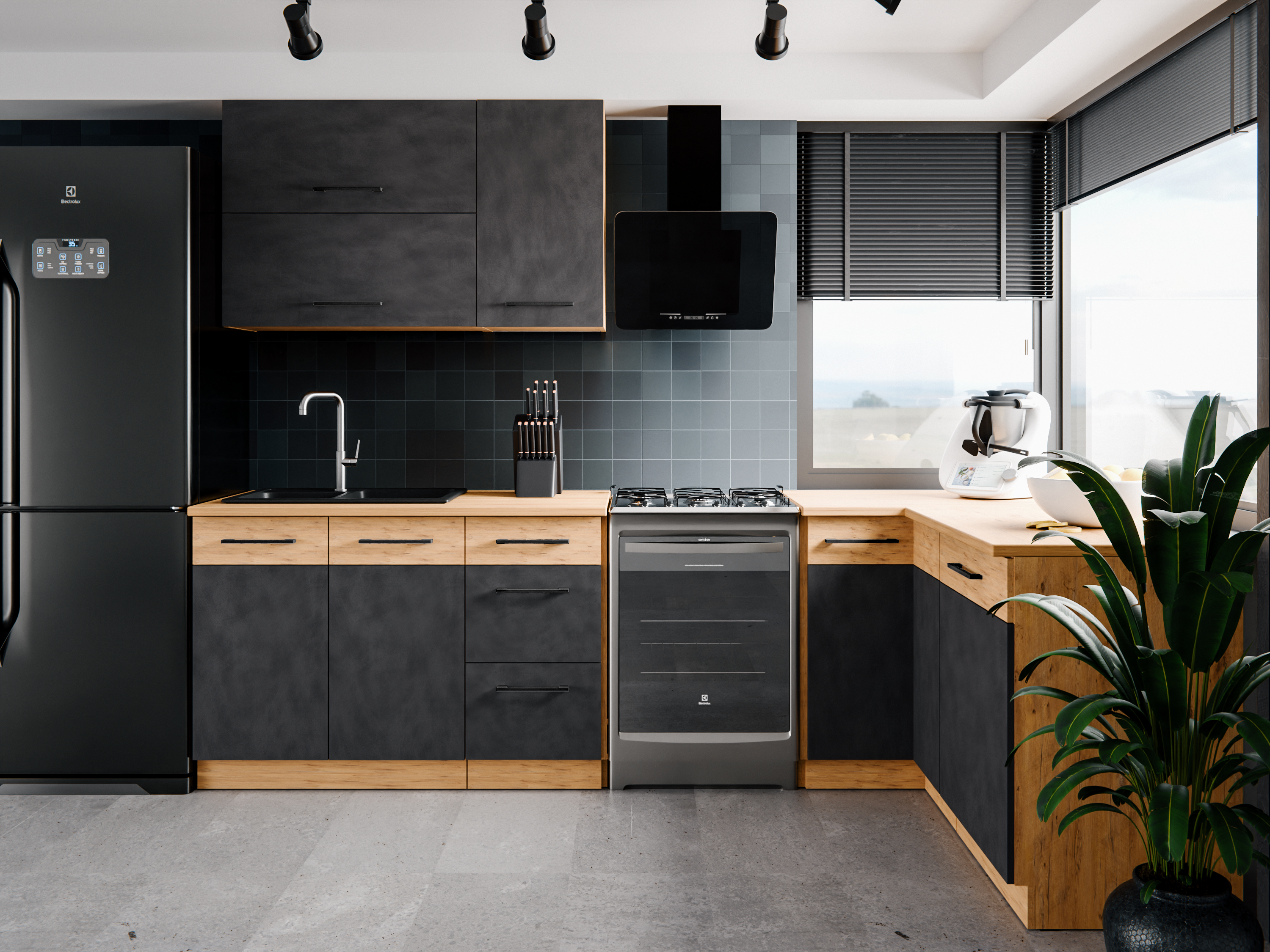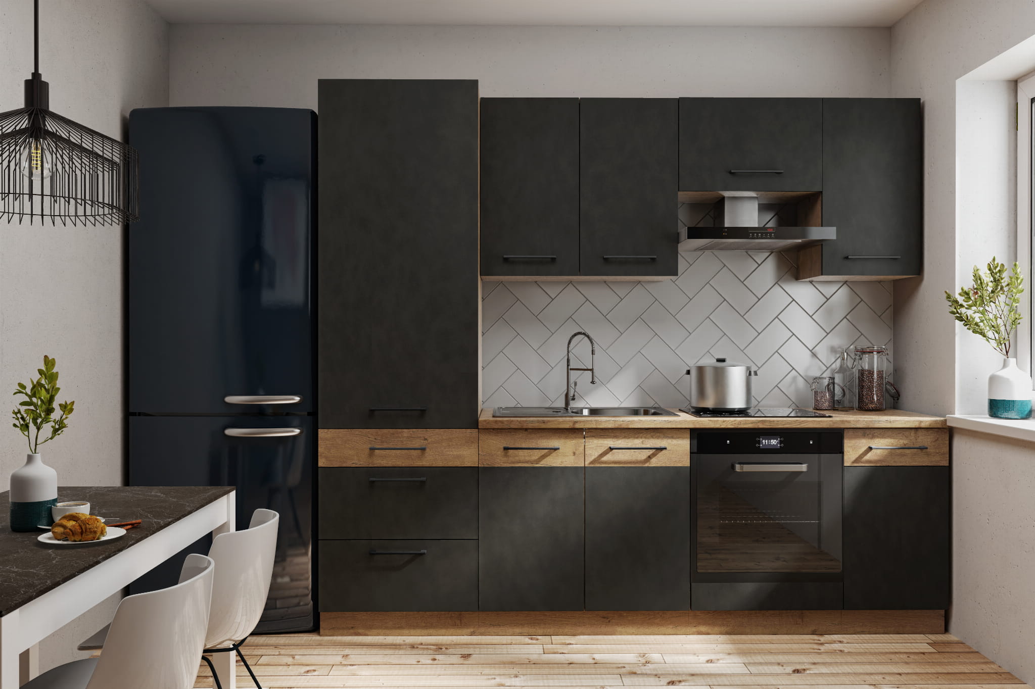 ☑️ Kolekcja mebli kuchennych SARA łączy elegancki odcień matera mat z naturalnym urokiem dekoru dąb lancelot, tworząc nowoczesną i przytulną przestrzeń kuchenną. Modułowa konstrukcja szafek pozwala dowolnie aranżować układ zabudowy, dopasowując go do każdego wnętrza. System cichego domyku i prowadnice PREMIUM BOX zapewniają płynne, komfortowe użytkowanie każdego dnia..