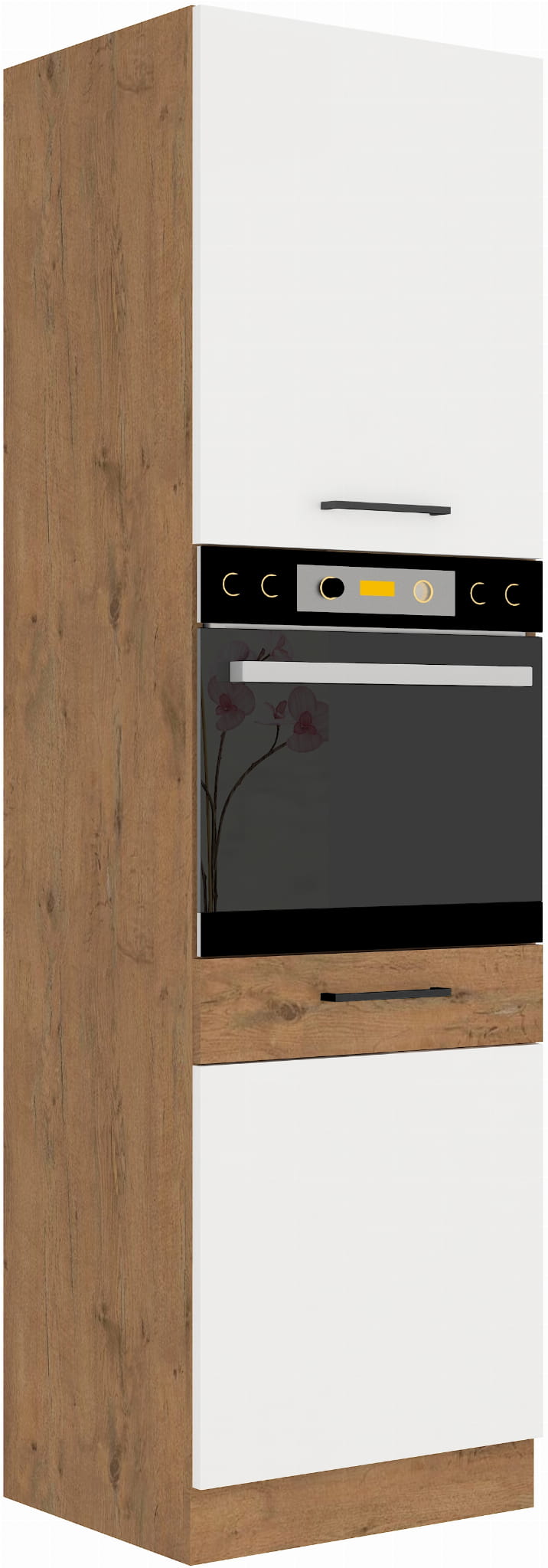 Szafka kuchenna słupek pod zabudowę piekarnika z frontami 60 DP-210 2F SARA - biały połysk / dąb lancelot