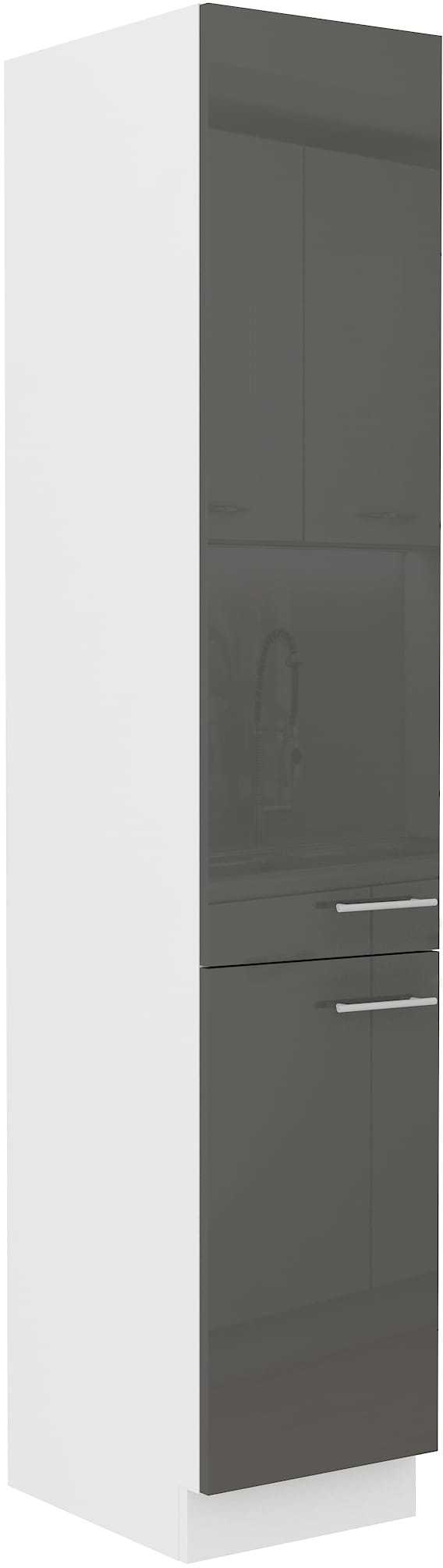 Słupek kuchenny VENUS o szerokości 40 cm i wysokości 210 cm to smukły, a zarazem bardzo pojemny element kuchni modułowej. Dzięki eleganckim, połyskowym frontom w szarym kolorze świetnie komponuje się z nowoczesnymi aranżacjami, podkreślając estetykę całej zabudowy.