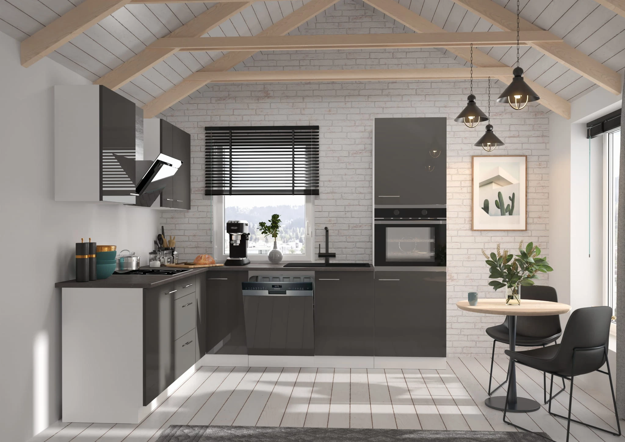 Połyskowe fronty w odcieniu szarości – nowoczesny wygląd i efekt wizualnego powiększenia przestrzeni.
