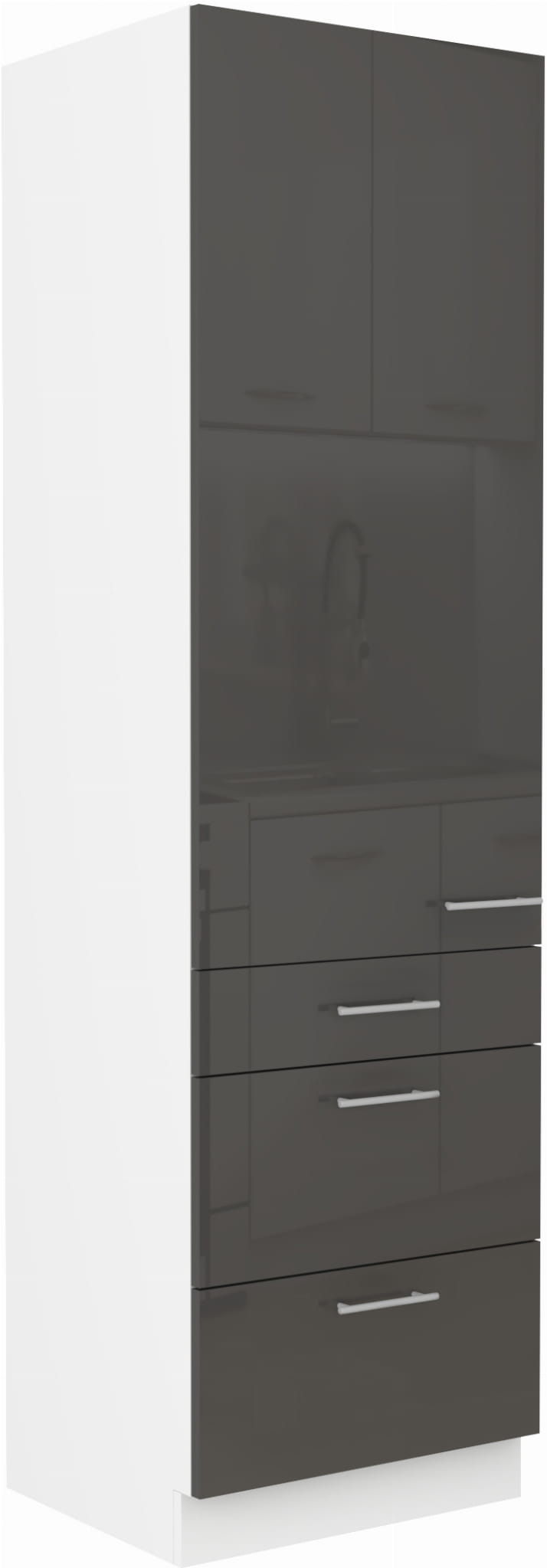 Słupek kuchenny VENUS o wysokości 210 cm i szerokości 60 cm to pojemne i funkcjonalne rozwiązanie do nowoczesnej kuchni modułowej. Połyskowe fronty w eleganckim szarym kolorze sprawiają, że szafka świetnie komponuje się z minimalistycznymi wnętrzami.