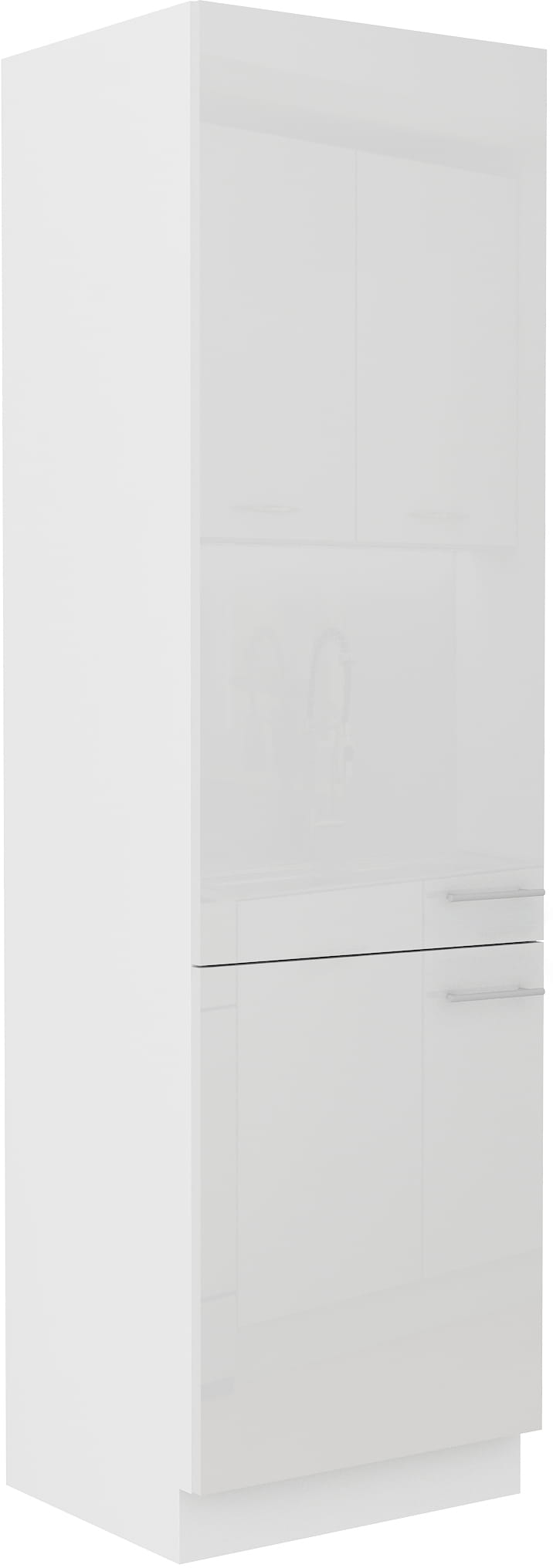 Szafka słupek VENUS 60 LO-210 w biały połysk to nowoczesny mebel o wysokości 210 cm, który idealnie dopełni aranżację kuchenną. Lśniące fronty w bieli wraz z białym korpusem i chromowanymi uchwytami nadają wnętrzu elegancji i świeżości.