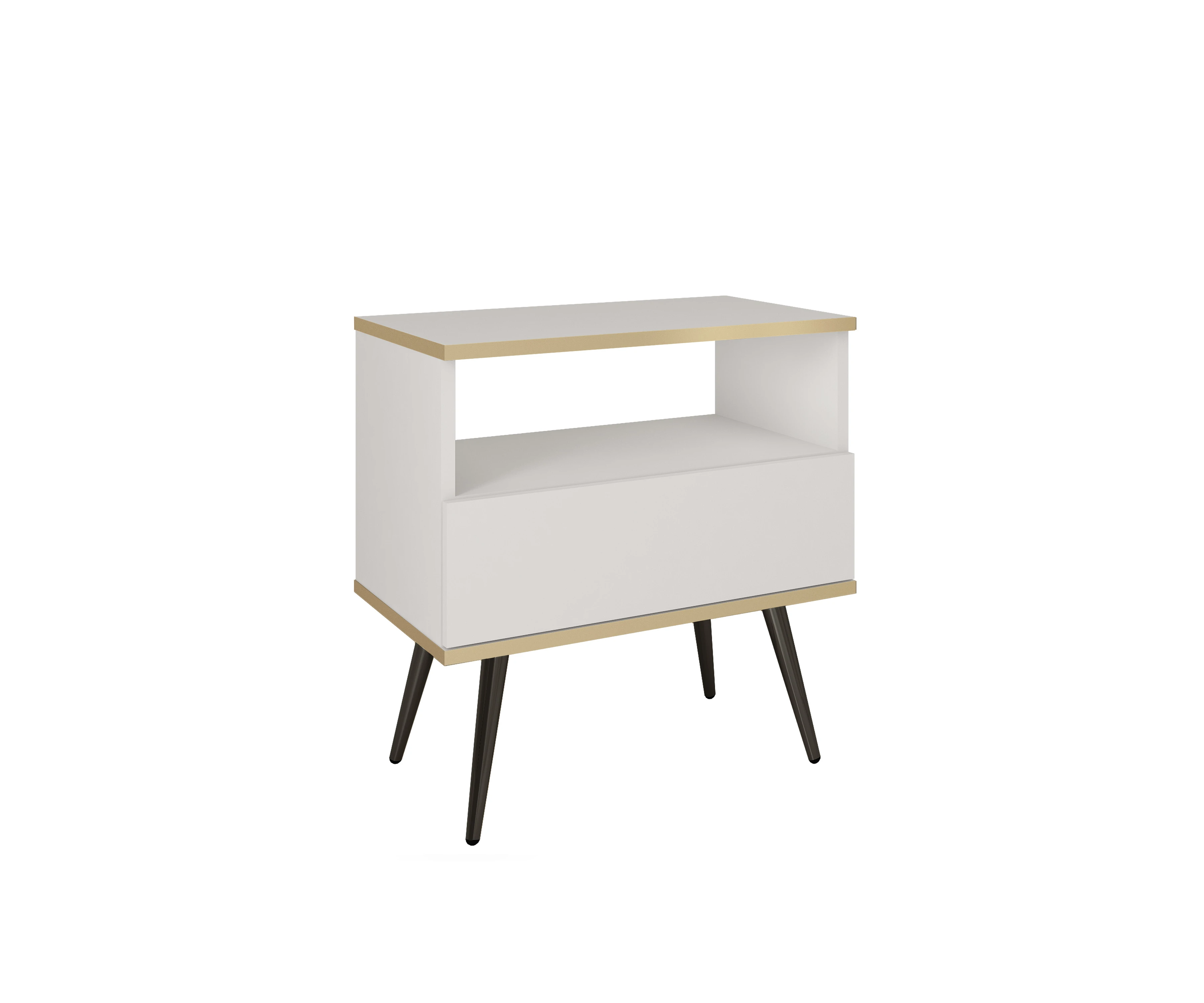 Szafka nocna 54 cm biała ze złotymi zdobieniami i czarnymi nogami — Aurezzia