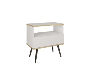 Szafka nocna 54 cm Aurezzia - Biała ze złotymi zdobieniami i czarnymi nogami