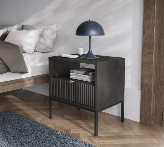 SZAFKA NOCNA - CZARNY / CZARNY STELAŻ